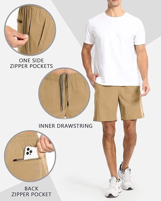 กางเกงขาสั้นกีฬาเข้ารูปพอดีตัวสำหรับผู้ชายมีกระเป๋าหูรูดและกระเป๋าใส่ของน้ำหนักเบาพร้อมกระเป๋าสัมภาระ