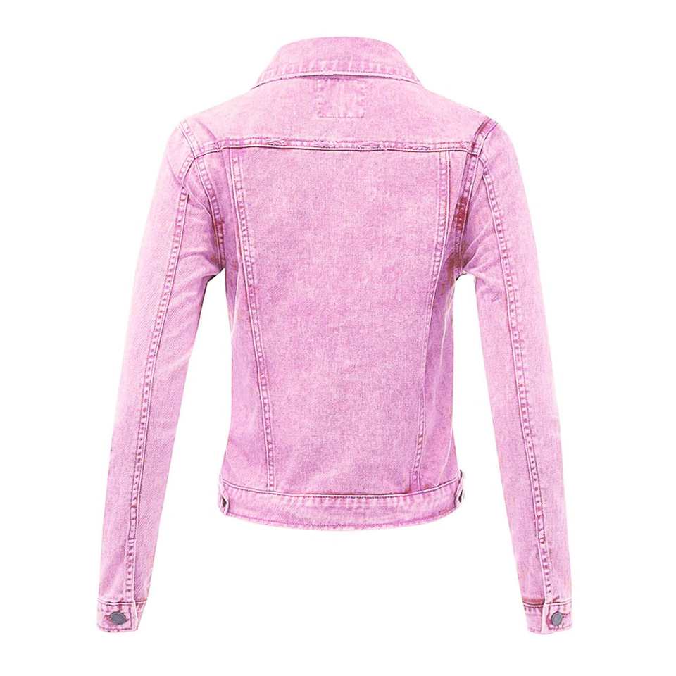 แจ็คเก็ตยีนส์สีชมพูทรงสลิมฟิต สไตล์สตรีทแวร์ กระดุมทรงโดนัท ผ้ายีนส์ฟอก สำหรับผู้หญิง ใส่เป็นเสื้อนอกในฤดูหนาว