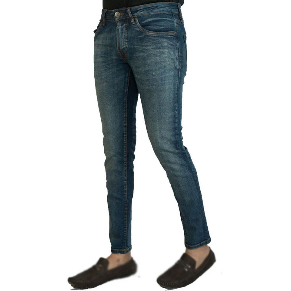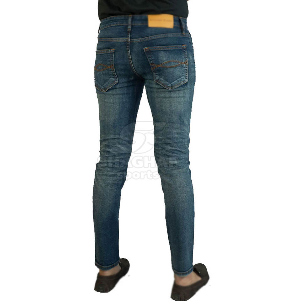 กางเกงยีนส์ผ้ายืดทรงสลิมฟิต สกรีนโลโก้ได้ตามสั่ง รับผลิตแบบ OEM มีจำหน่ายขายส่ง กางเกงยีนส์ผู้ชายแบบฟอก
