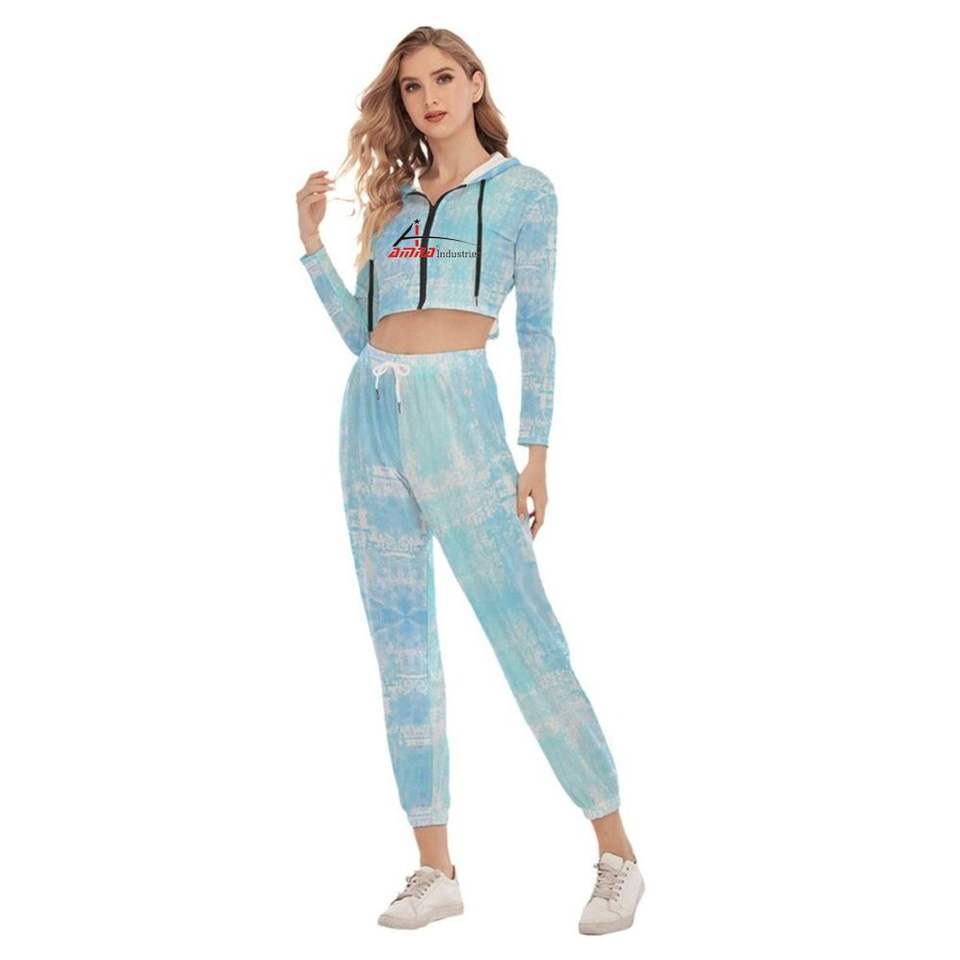 ชุดวอร์มผู้หญิงแบบครอปเข้ารูป,ชุดวิ่งออกกำลังกายแบบมีฮู้ดพร้อมโลโก้ตามสั่ง