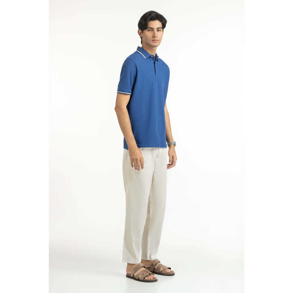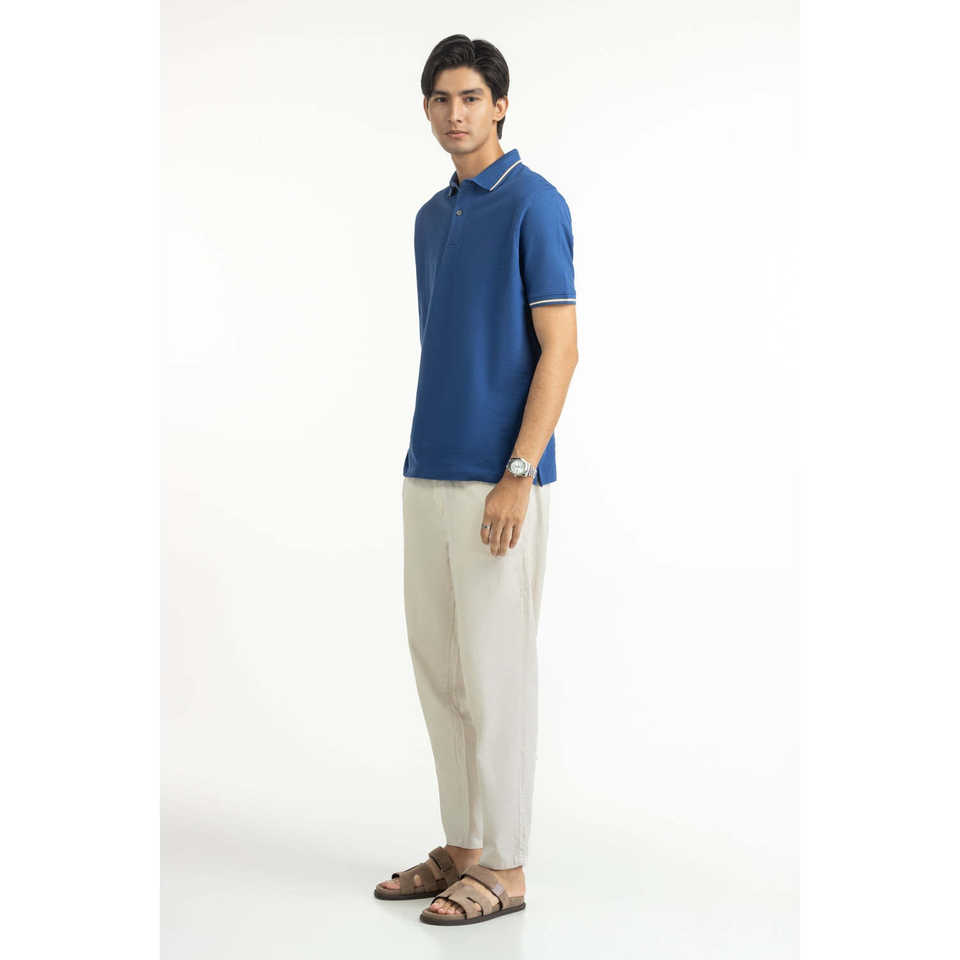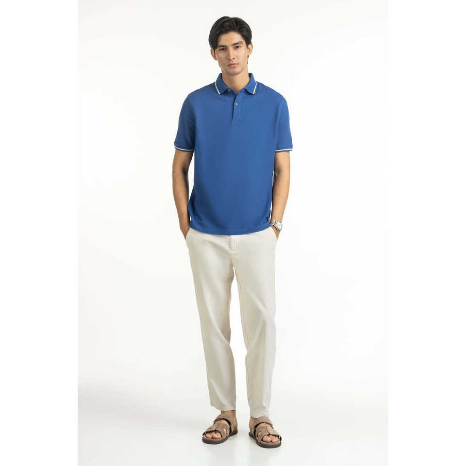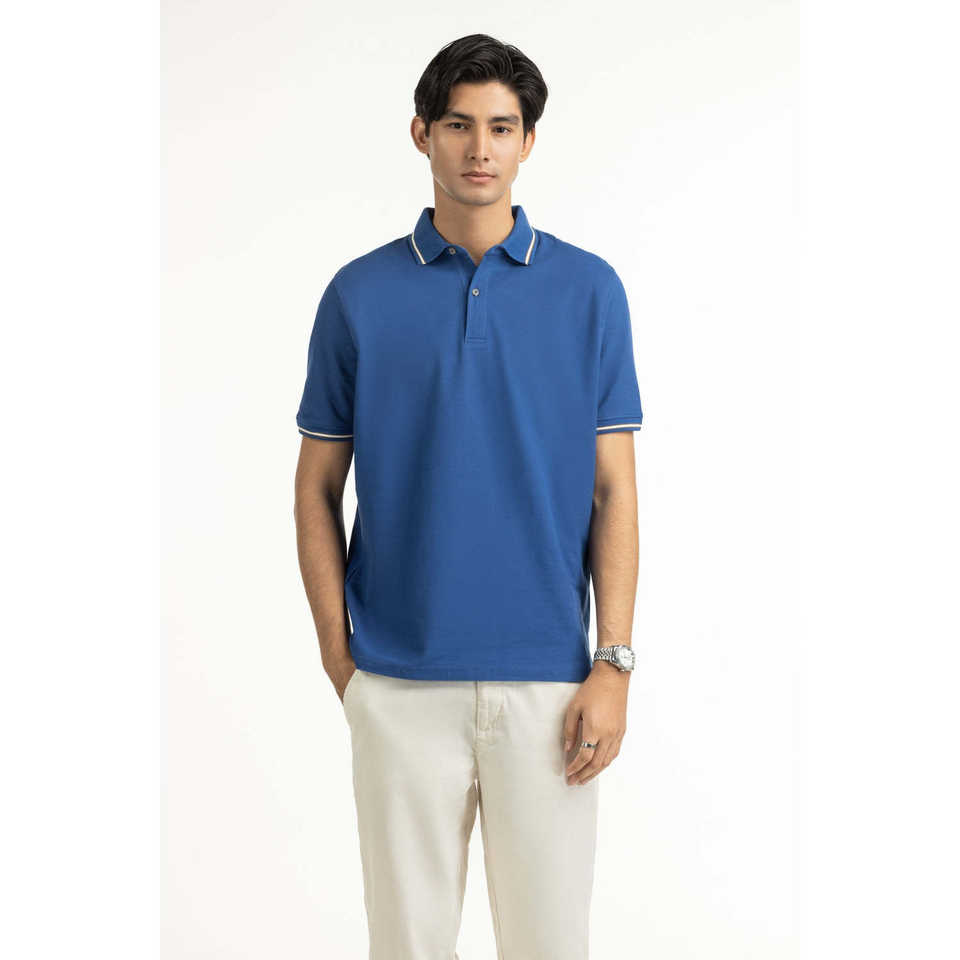 ทรงเข้ารูปสำหรับเสื้อโปโล MN-PSH-SS25-023 สีเข้มอ่อน ผ้าถักย้อมสีพื้น ระบายอากาศได้ดี ความยาวสั้น ตกแต่งด้วยกระดุม ไซส์ XL