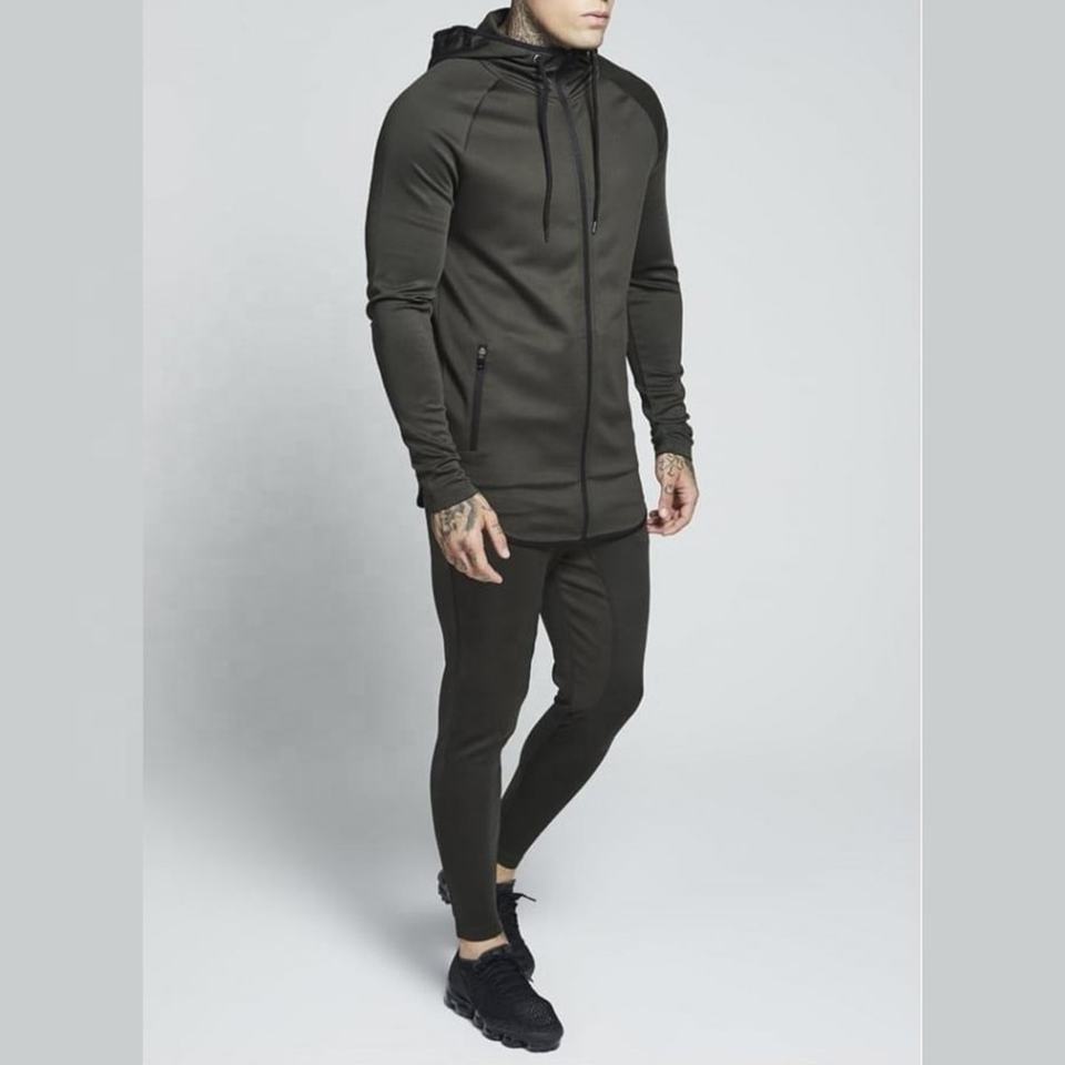 ชุดออกกำลังกายสำหรับผู้ชายชุดวอร์มเข้ารูปสำหรับออกกำลังกายผ้าคอตตอนดีไซน์พิมพ์โลโก้