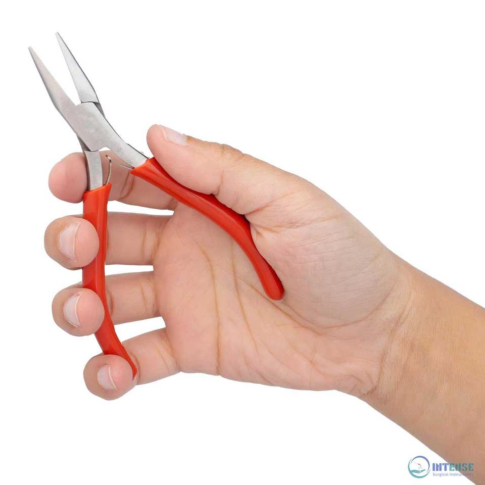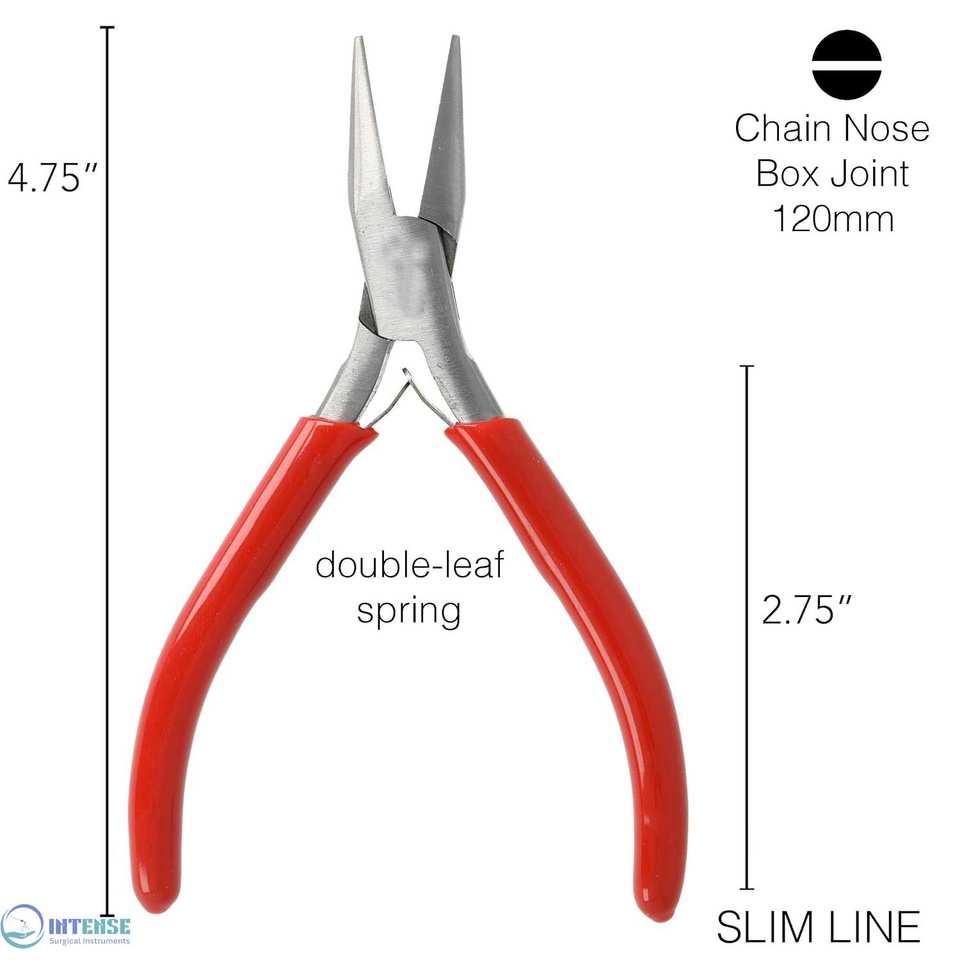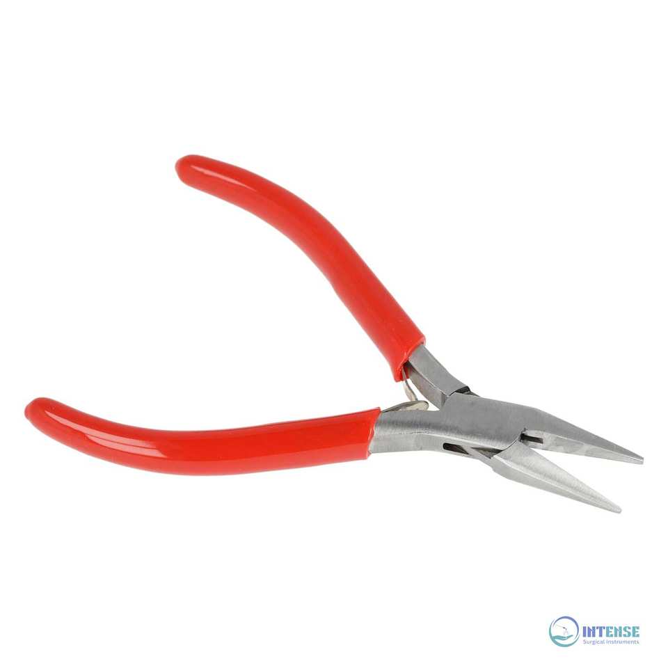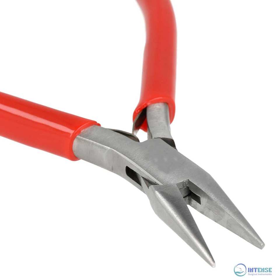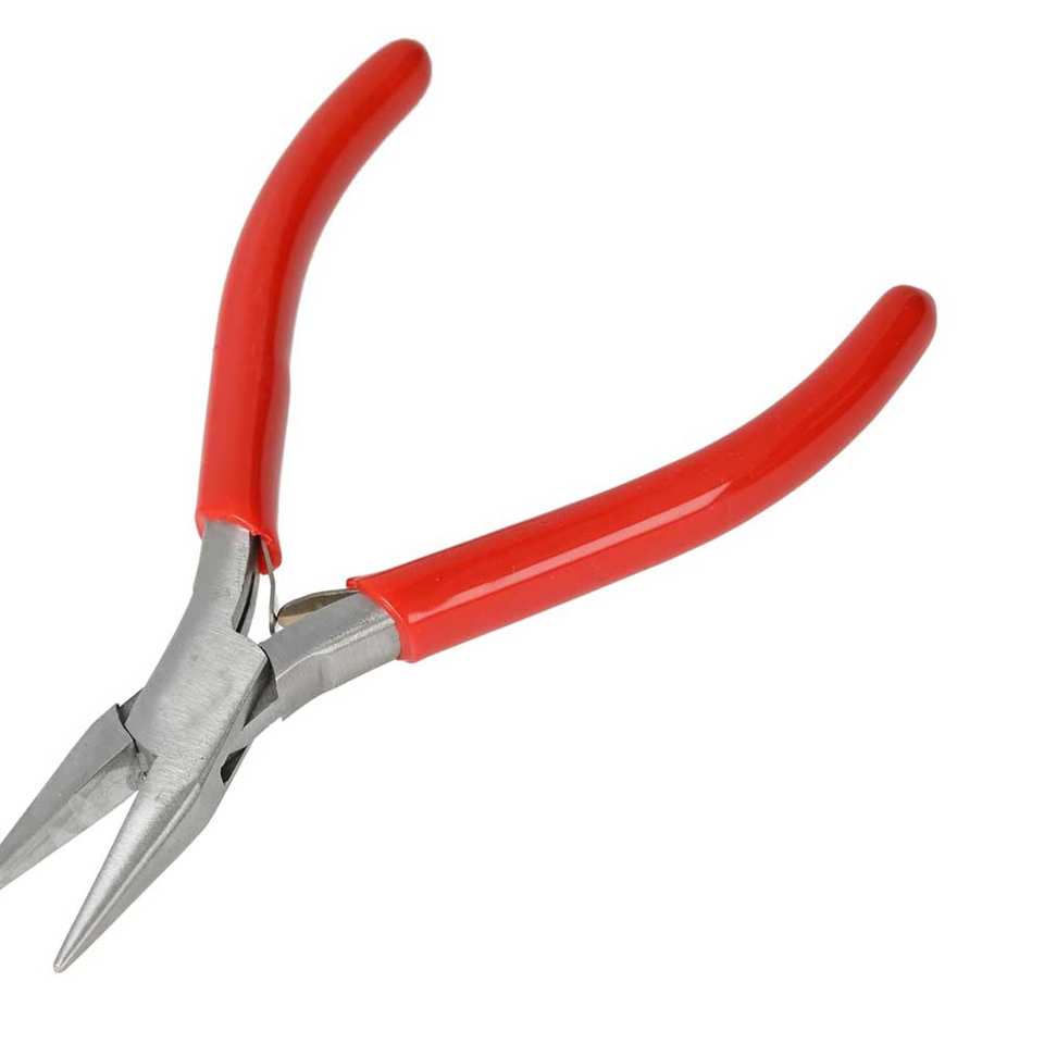 คีมปากแหลมแบบบาง 4.75 นิ้ว หัวสแตนเลสขัดเงา ด้ามจับพีวีซีสีแดงแบบสบายมือ พร้อมสปริงคู่ สำหรับงานเครื่องประดับ