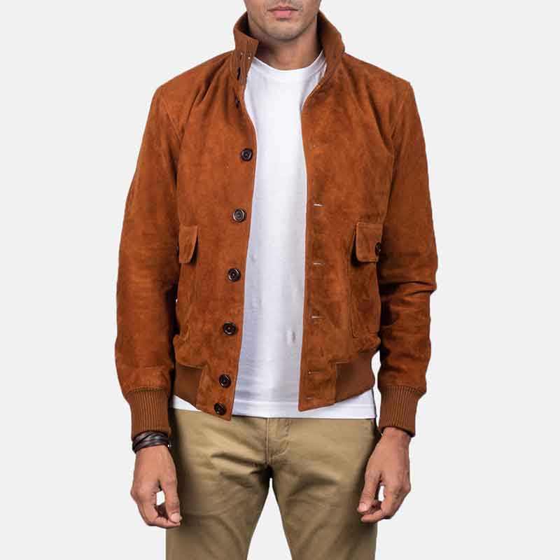 แจ็กเก็ตหนังแท้ของผู้ชายทรงเข้ารูป, แจ็กเก็ตหนังกลับวัวธรรมชาติเสื้อเบสบอลลำลองสำหรับฤดูหนาว