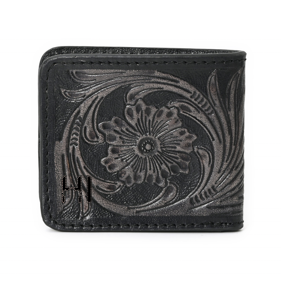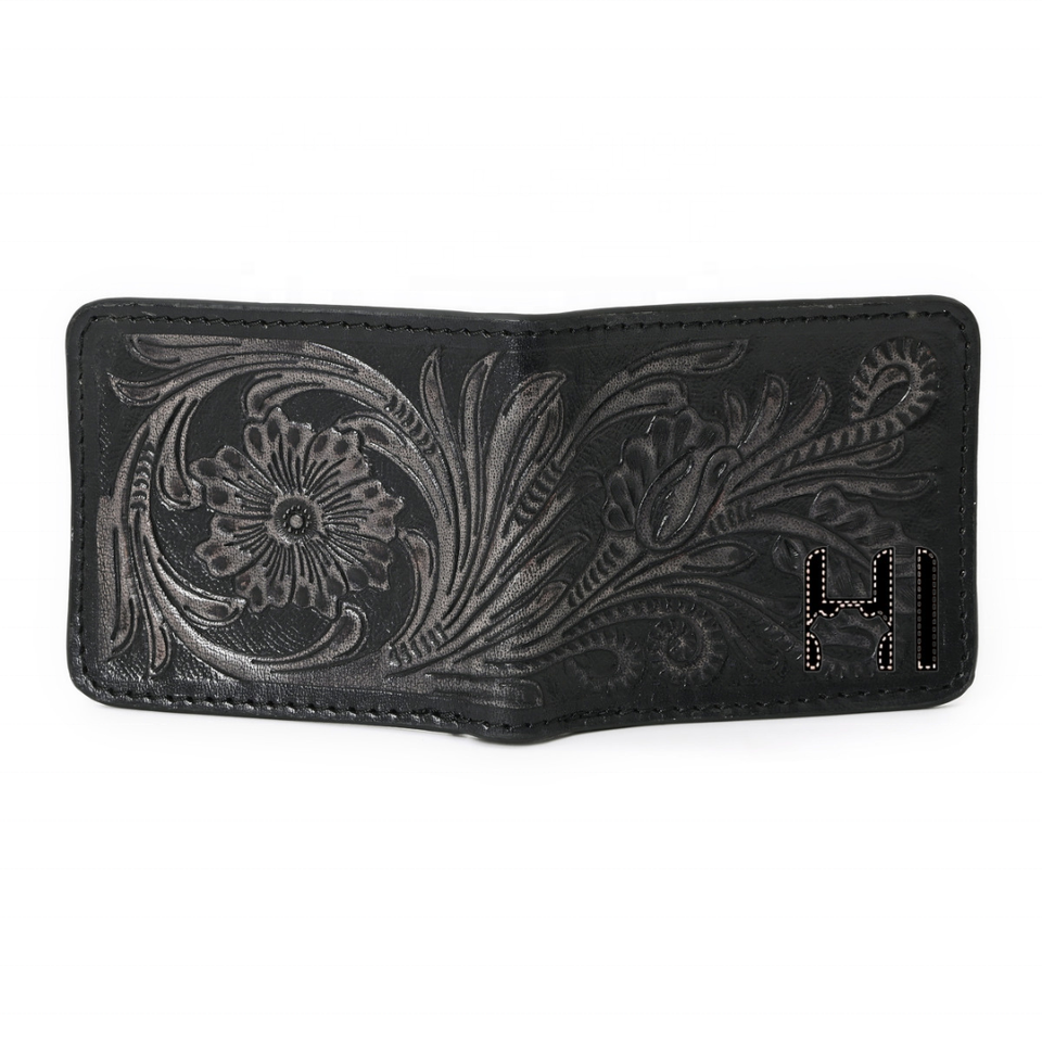 กระเป๋าสตางค์หนังแท้แบบพับสามตอน ป้องกัน RFID ลายตะวันตก