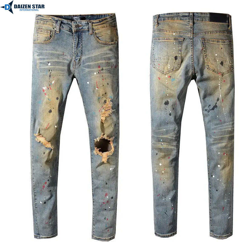 กางเกงยีนส์ทรงสลิมสไตล์โมเดิร์นฟิต แนวสตรีทแฟชั่น คอลเลคชั่นวัยรุ่น ลุควินเทจ ล้างสีแบบวินเทจ ทันสมัย สวมใส่สบาย