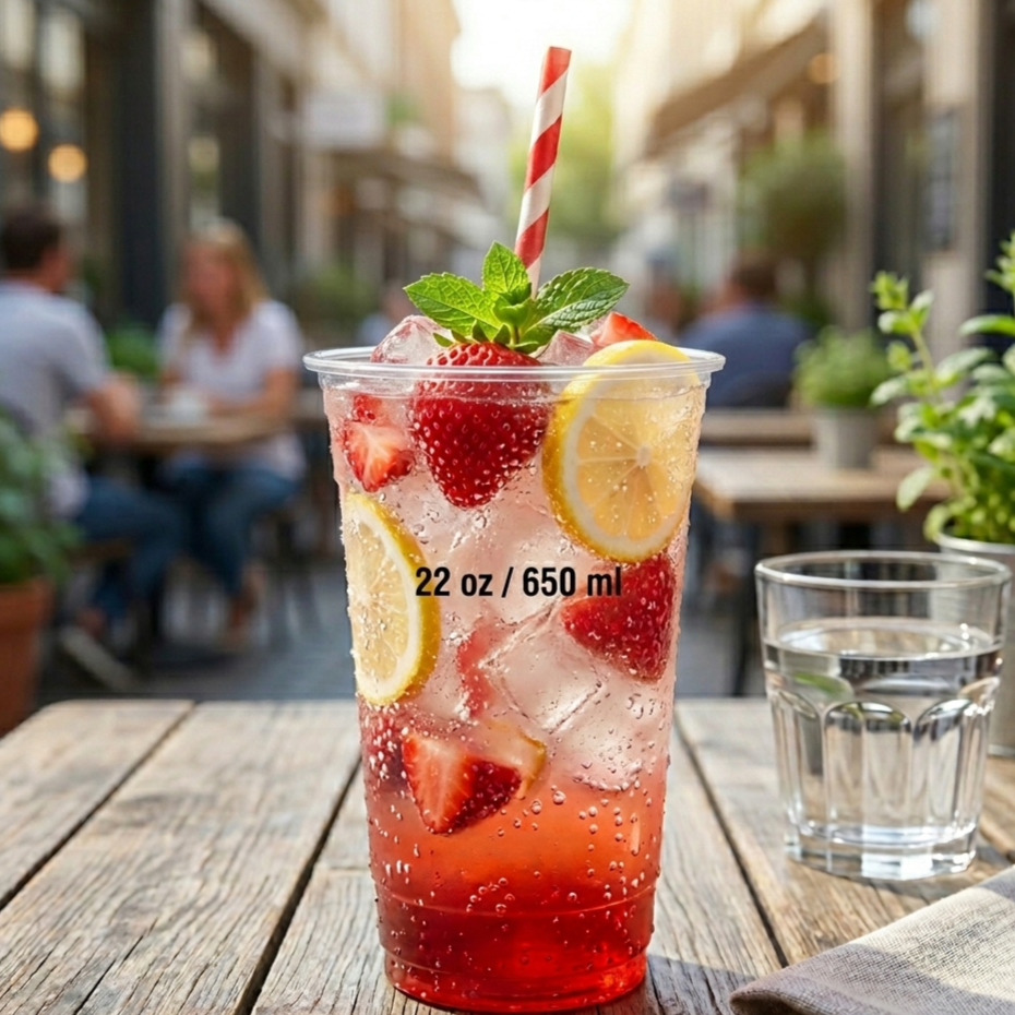 แก้วพลาสติก PP โพลีโพรพิลีน ขนาด 9 กรัม รุ่น Slim and Tall ความจุ 22 ออนซ์ สำหรับเครื่องดื่มเย็น ผลิตในอินโดนีเซีย