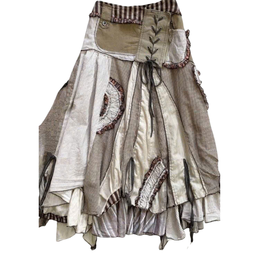 คีย์เวิร์ด:กระโปรงยีนส์เย็บปะติดปะต่อกัน