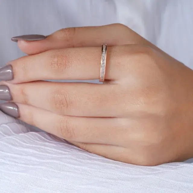 Slim rose gold diamond eternity band ring for women elegant sparkling diamond ring perfect for wedding engagement anniversary