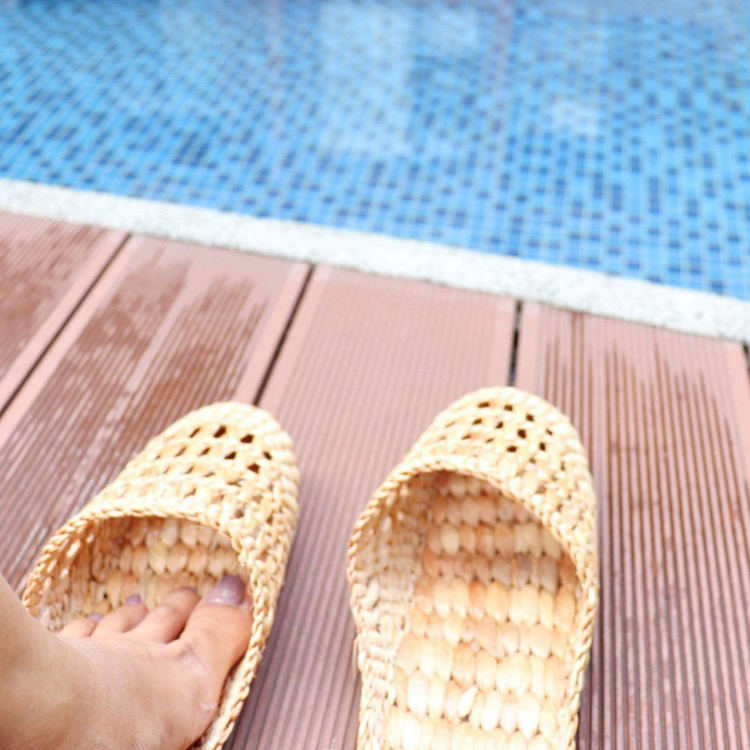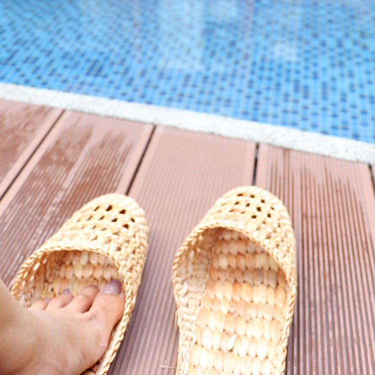 รองเท้าแตะผักตบชวาทำด้วยมือรองเท้าแตะผ้าเป็นมิตรกับสิ่งแวดล้อม