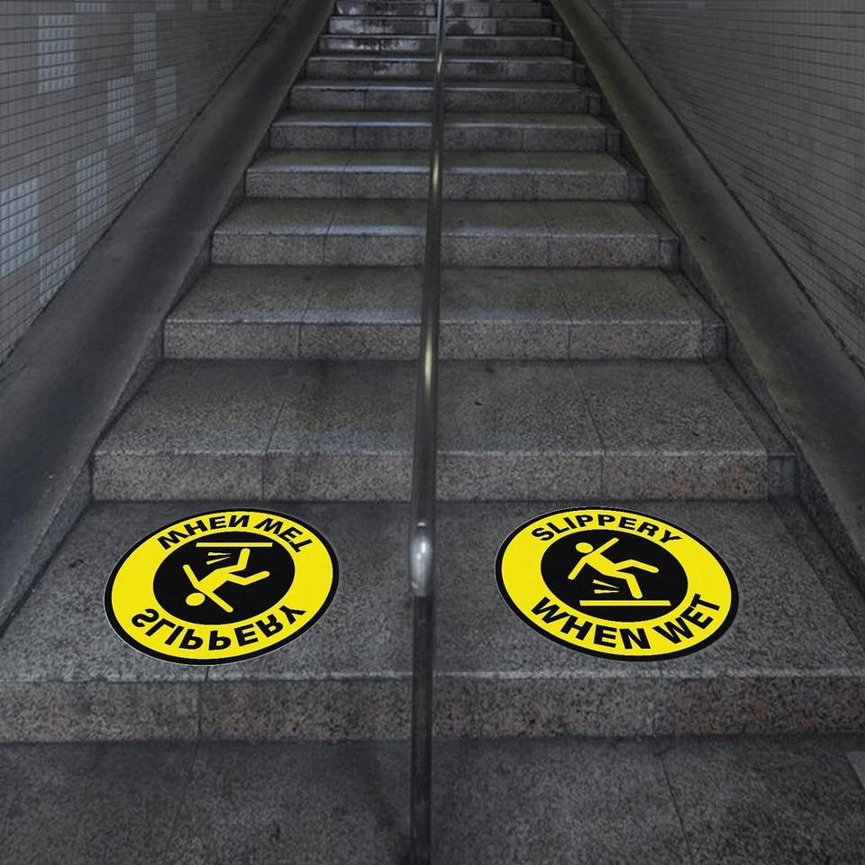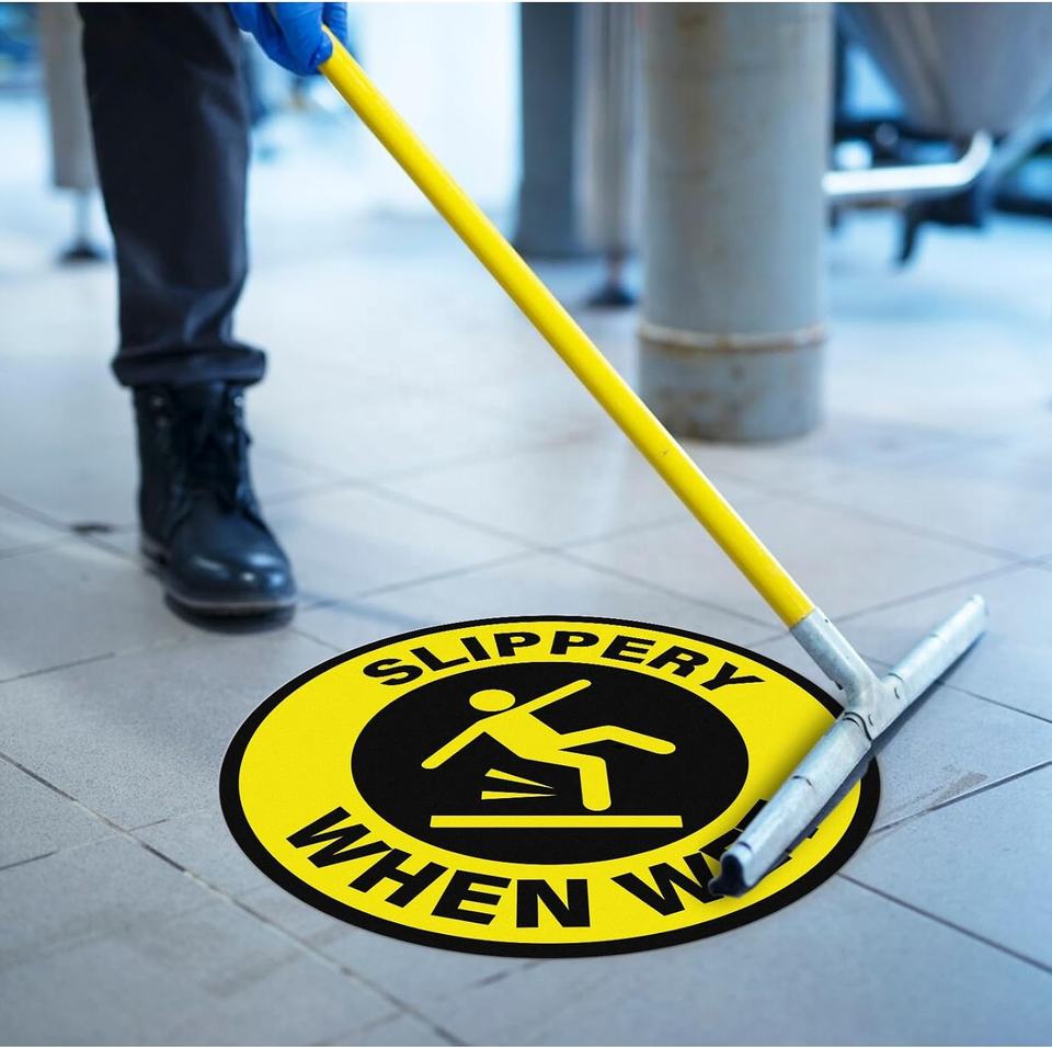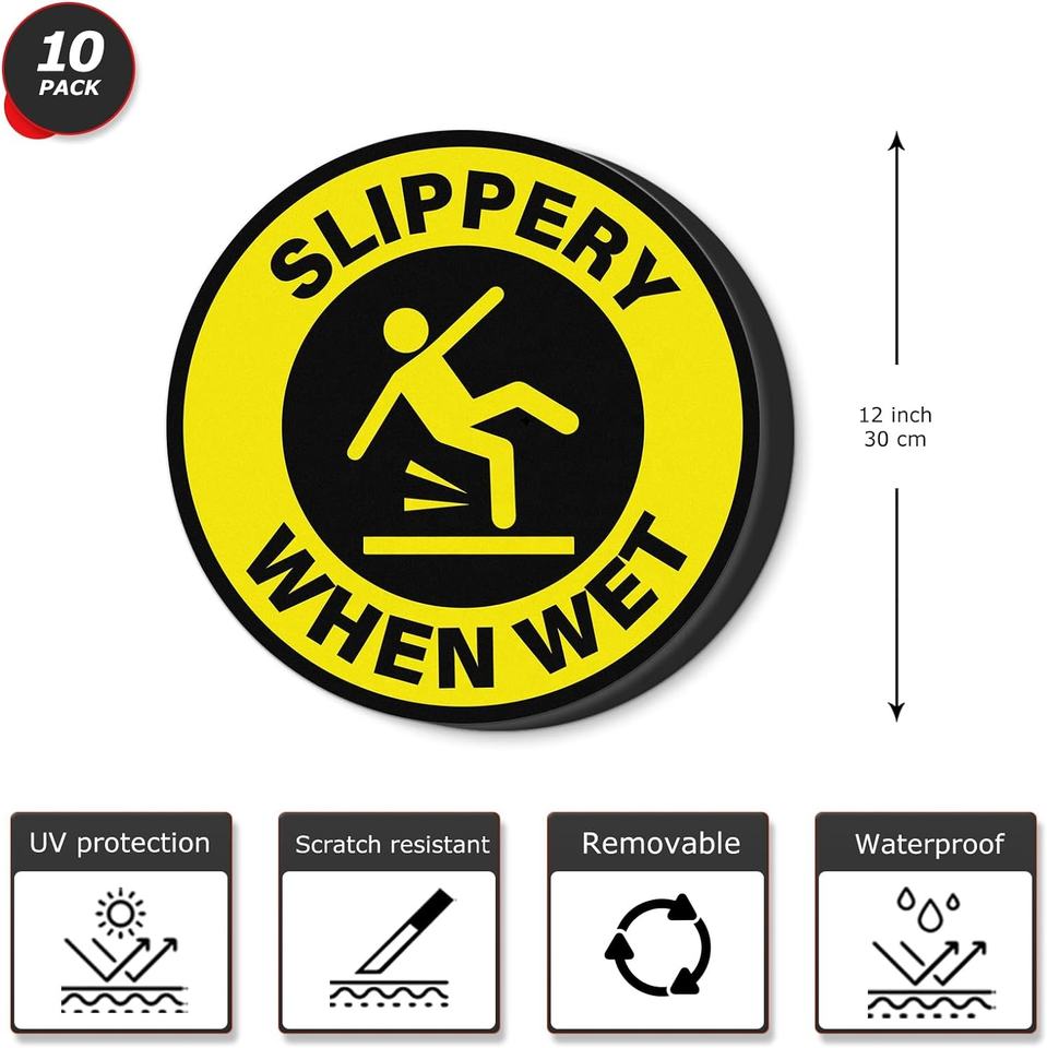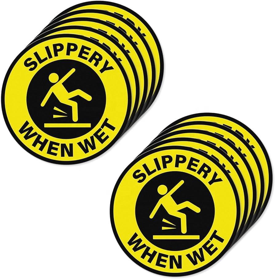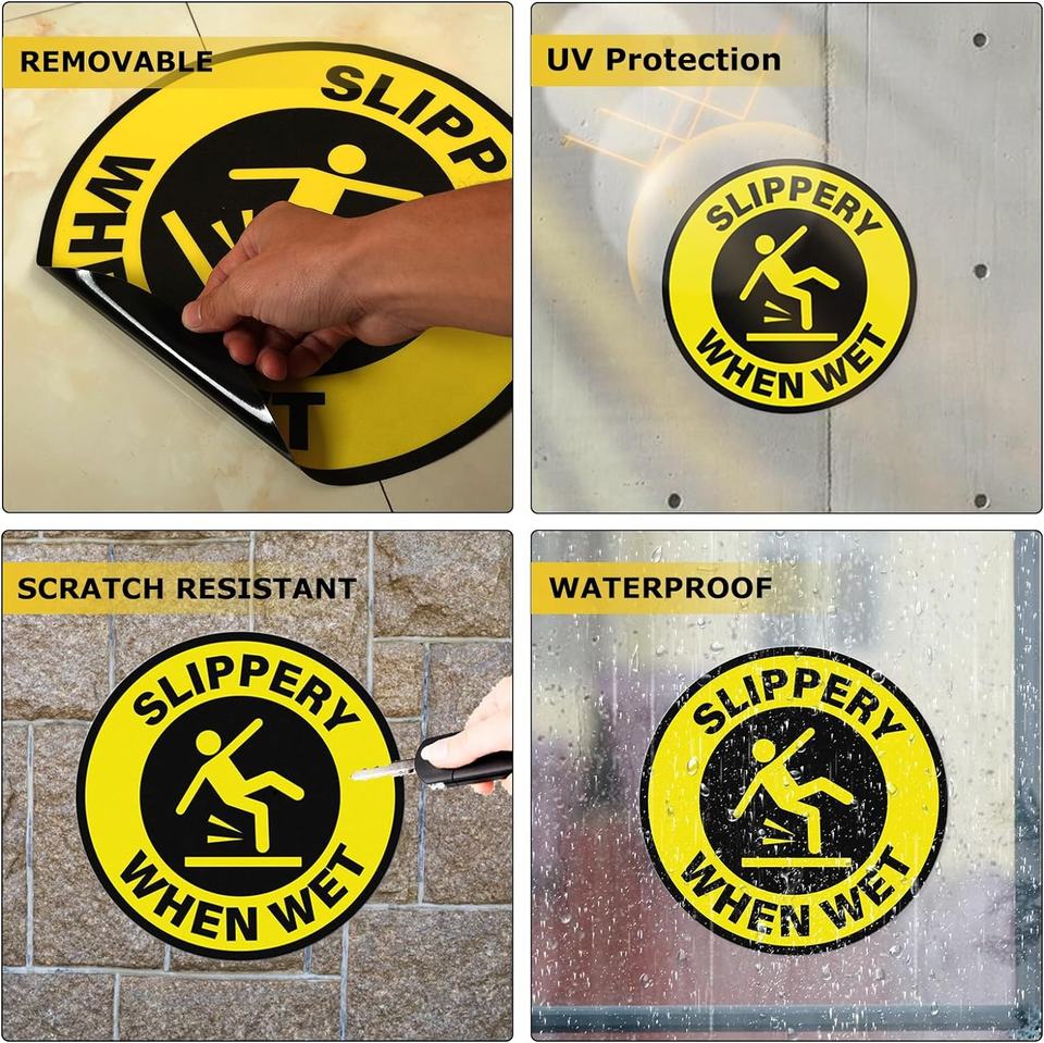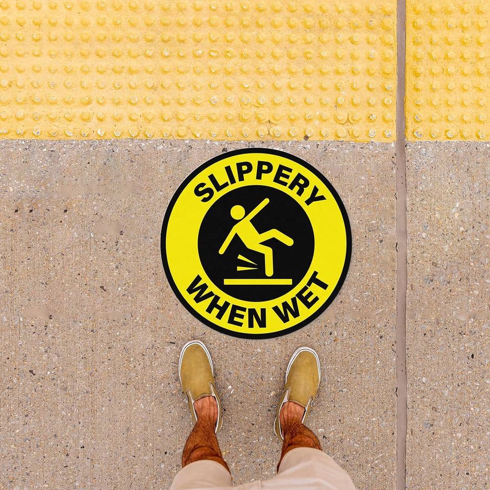 ป้ายเตือนพื้นเปียก ขนาด 12 นิ้ว ไวนิลแบบลอกออกได้ ติดด้วยตัวเอง สติ๊กเกอร์เตือนความปลอดภัยพื้นเปียก