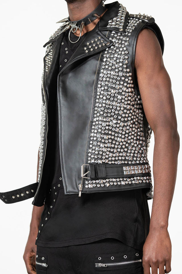 Product name:Metal Silver Studded Leather Biker Vests