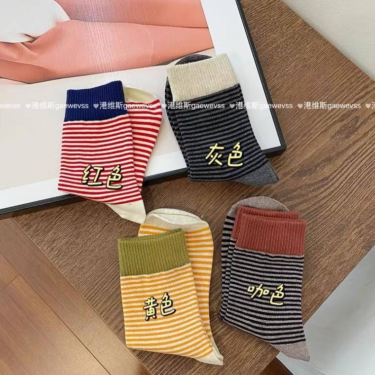 Slouch Socks Women Striped Retro Color Block Autumn Winter Sweat Absorbing Casual Style Regular Fit