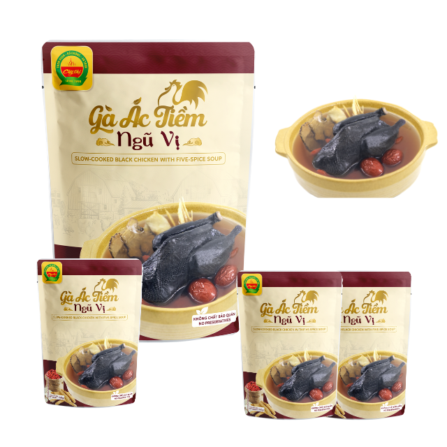ไก่ดำปรุงสุกช้าพร้อมซุปห้าเครื่องเทศ24PS 350กรัม OEM ISO HACCP เวียดนามโรงงาน MRE พร้อมรับประทานอาหารซุปเพื่อสุขภาพ