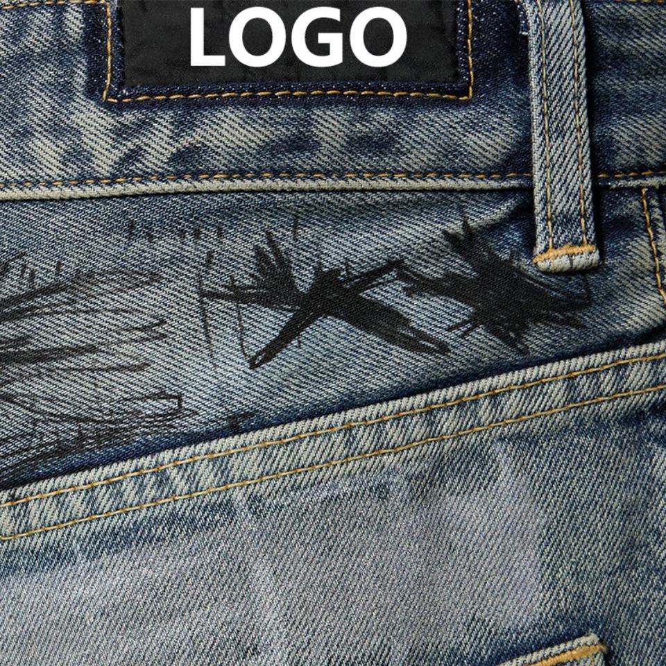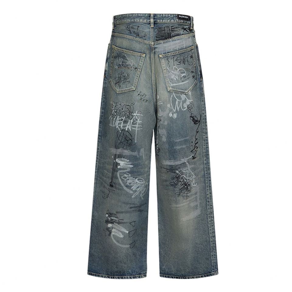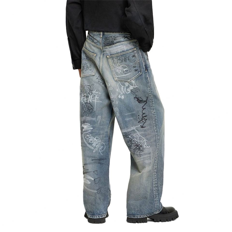กางเกงยีนส์ทรงขาบานสไตล์ฮิปฮอปสำหรับผู้ชาย ดีไซน์ใหม่จาก Slvow แบบโอเวอร์ไซส์ สั่งทำได้ ลายกราฟฟิตี สไตล์แบ็กกี้