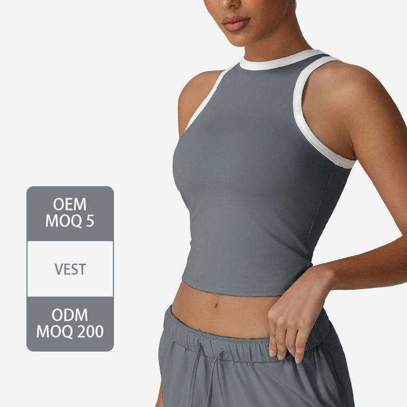 เสื้อกล้ามออกกำลังกายผู้หญิง รุ่น Sm2532-1 คอกลม สีตัดกัน สวมใส่สบาย เหมาะสำหรับวิ่ง ออกกำลังกาย โยคะ และใส่ในยิม