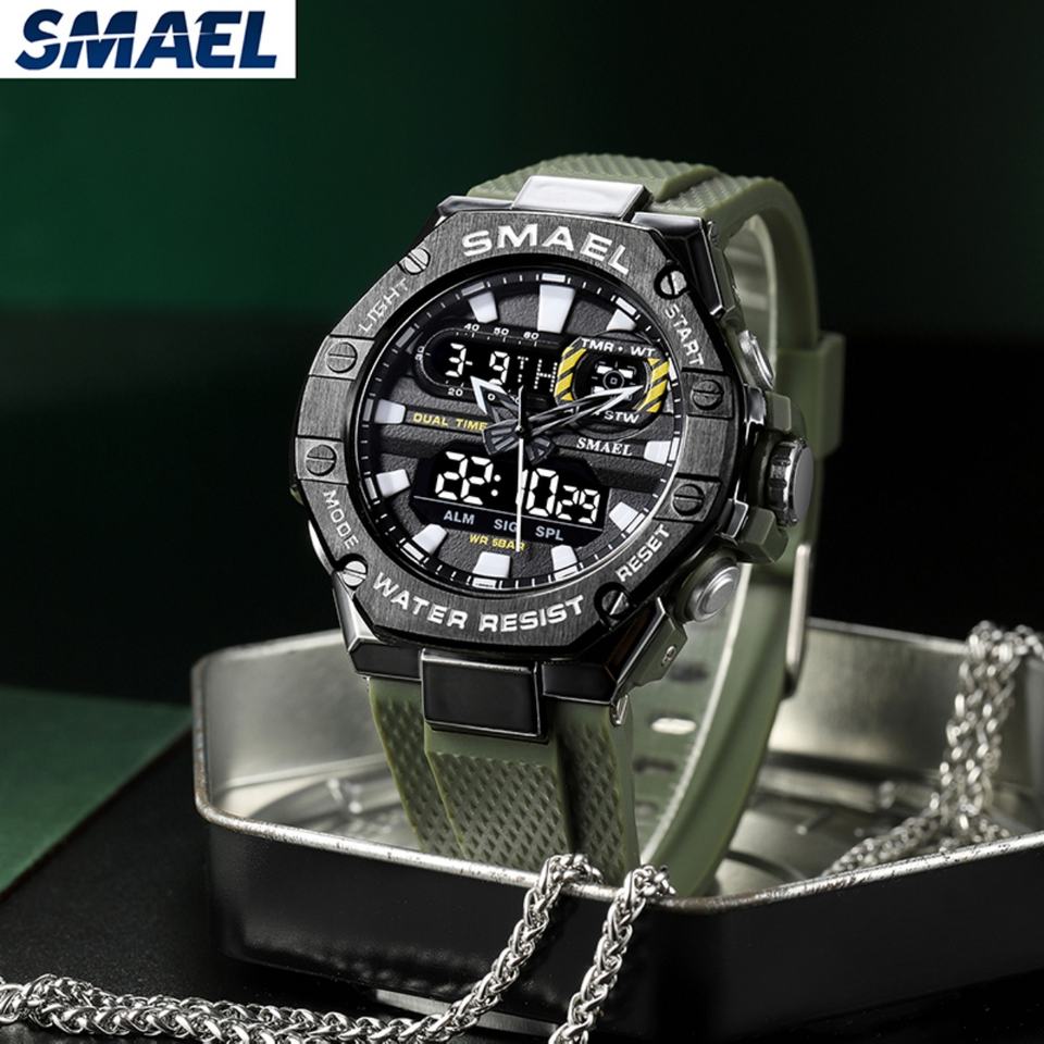 สมาเอล 8066 นาฬิกาสปอร์ตสำหรับผู้ชายจอแสดงผลแบบคู่ LED นาฬิกาจับเวลา นาฬิกาปลุกโครโนกราฟ 50 บาร์กันน้ำ