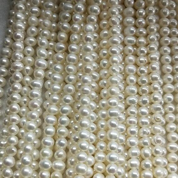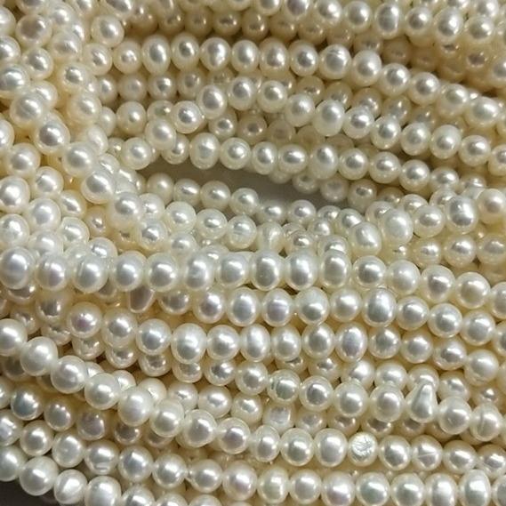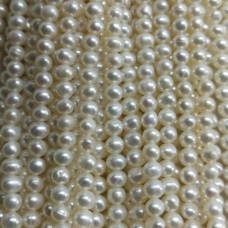 สร้อยคอมุกน้ำจืดขนาดเล็ก 4-4.5 มม. ลูกปัดมุกเกือบกลม สีขาว แบบกึ่งสำเร็จรูป