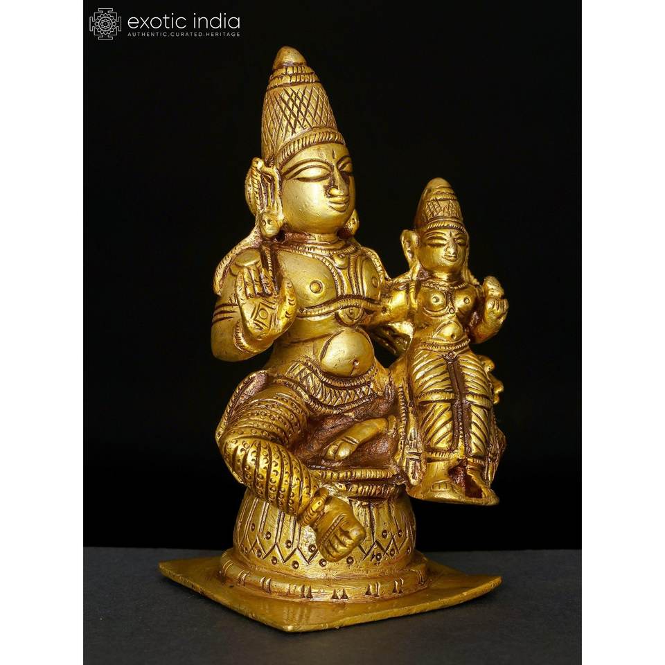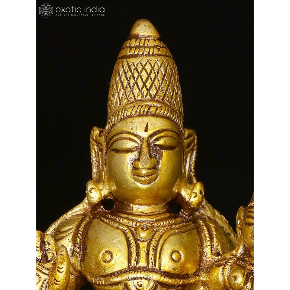 รูปปั้นทองเหลืองขนาดเล็ก4นิ้วของ Lord vishnu and DEVI lakshmi ทำด้วยมือในอินเดีย
