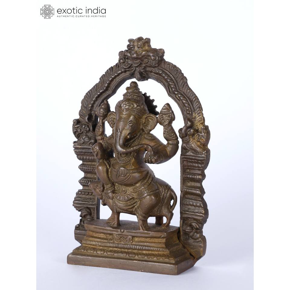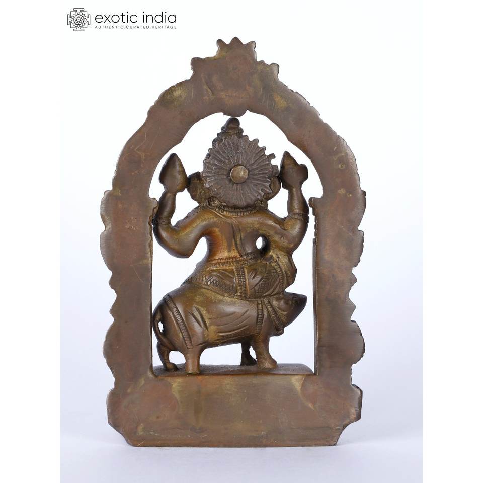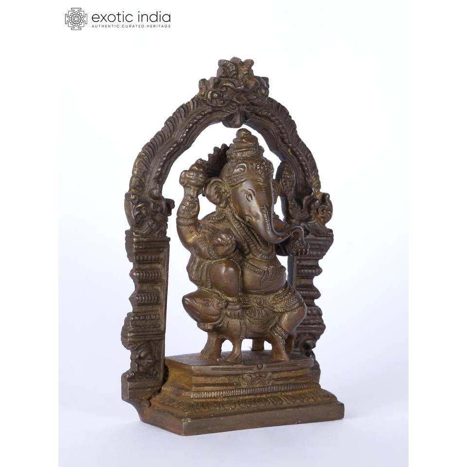 รูปปั้นพระพิฆเนศขนาดเล็ก5 "วางอยู่บนมัสฮักพร้อมรูปปั้นทองเหลืองเคิร์ติมูคา