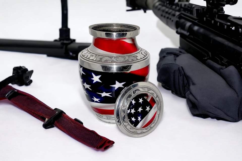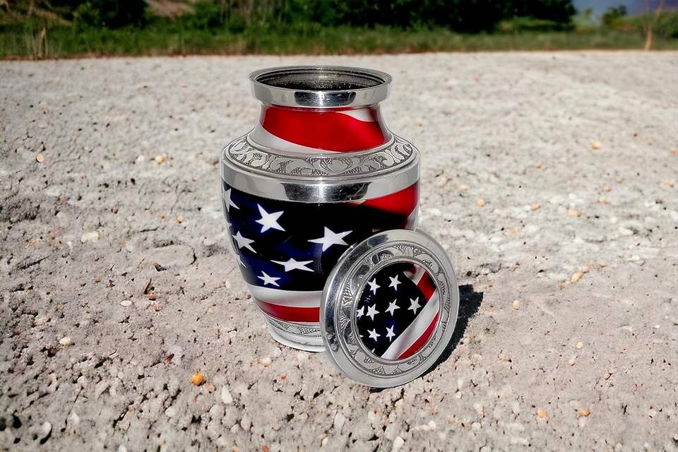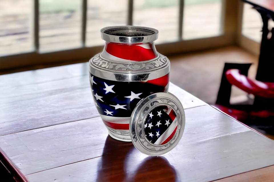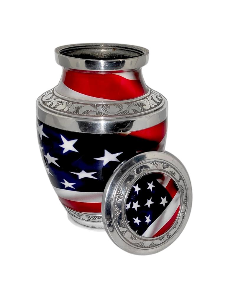 ภาชนะอนุสรณ์โกศทองเหลืองขนาดเล็ก 6 x 4 นิ้ว - 650 มล. งานฝีมือหายากรักชาติธงชาติสหรัฐพร้อมกระเป๋า