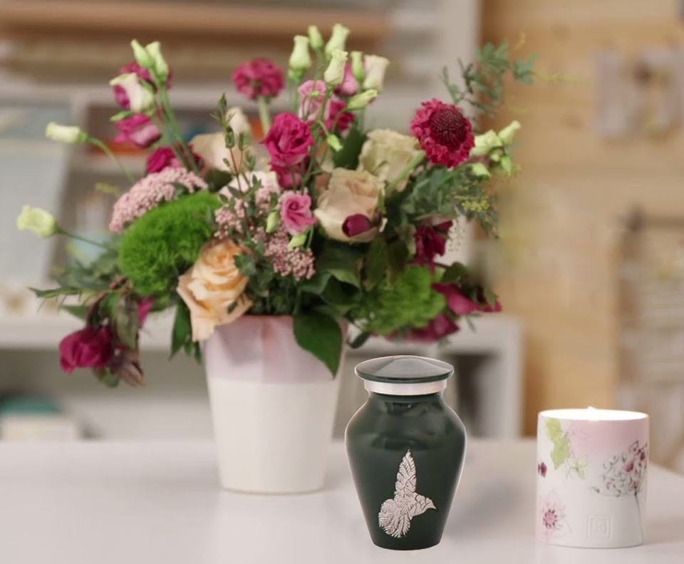 ชุดโกศบรรจุอัฐิทองเหลืองลายฮัมมิงเบิร์ดแบบอเมริกันขนาดเล็ก 4 ชิ้น เป็นมิตรกับสิ่งแวดล้อม ทนทาน ความจุ 200 คิวบิกนิ้ว