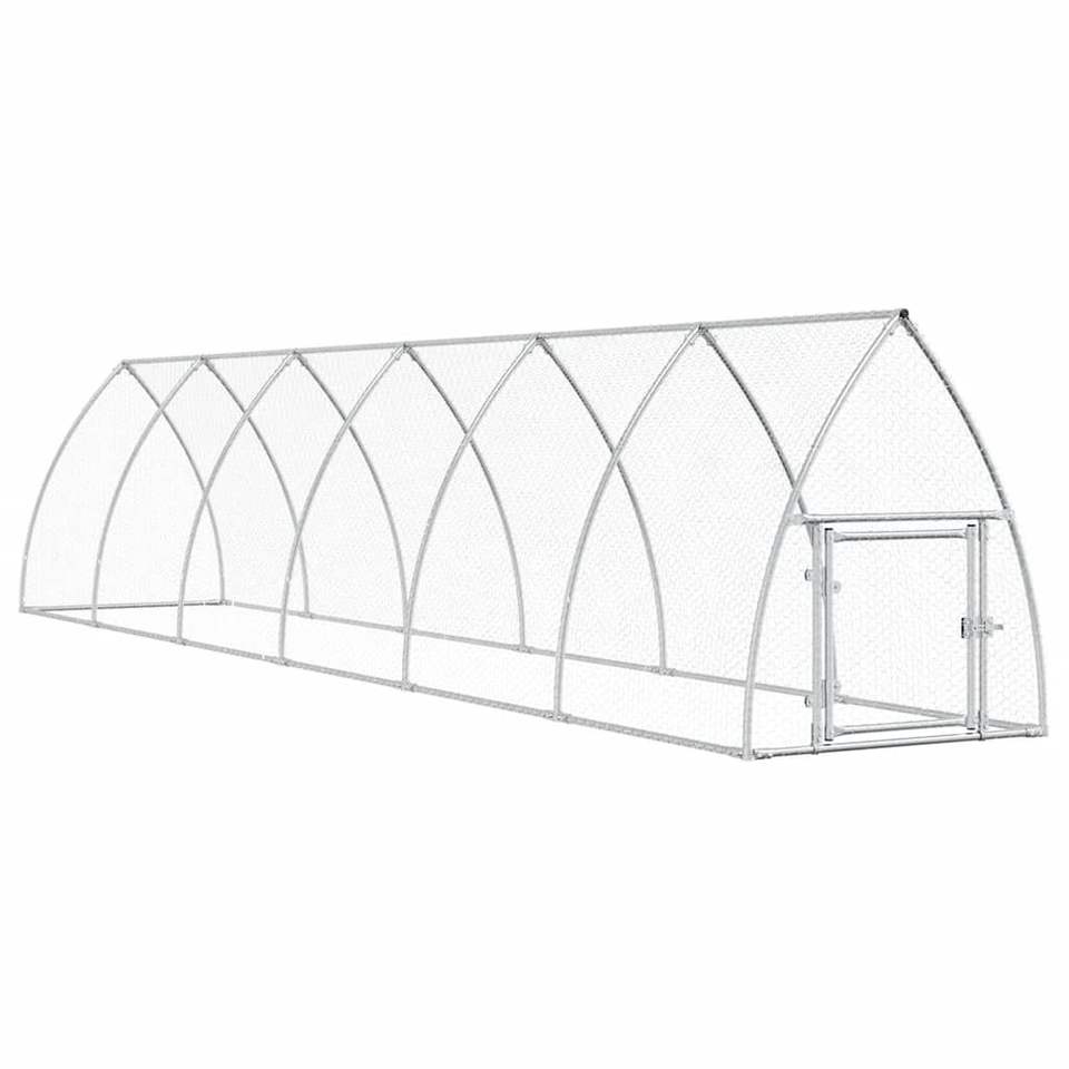 Small Animal Supplies 236.2"x41.3"x47.2" Galvanized Steel Chicken Cage Silver Chicken Coop