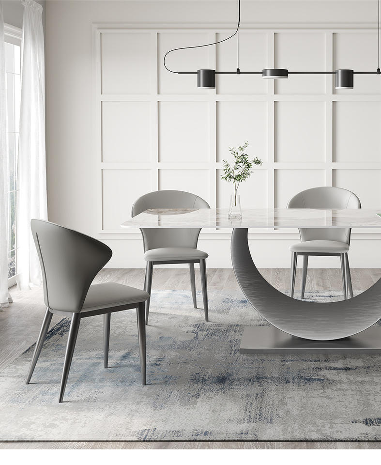 โต๊ะรับประทานอาหารหินอ่อนดีไซน์เรียบง่ายทรงสี่เหลี่ยมผืนผ้าเรียบง่ายอพาร์ทเมนต์ขนาดเล็ก