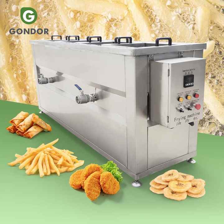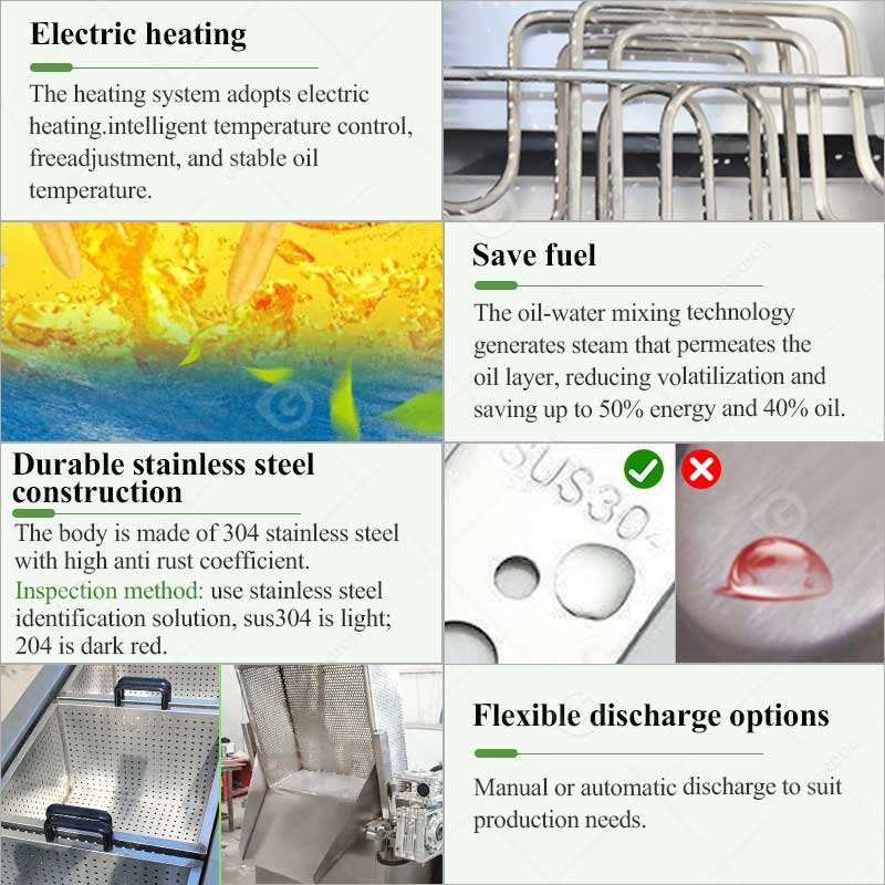 เครื่องทอดแบบใช้น้ำมันและน้ำขนาดเล็ก รุ่น 6 ความจุ 150 ลิตร สำหรับอุตสาหกรรม ใช้แก๊สหรือไฟฟ้า เหมาะสำหรับทอดปลาและอาหารประเภทอื่นๆ