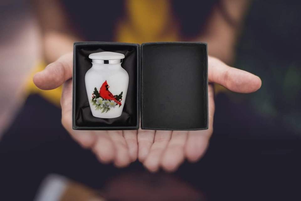 โกศที่ระลึกคาร์ดินัลแดงขนาดเล็กที่สวยงาม | สําหรับเถ้ามนุษย์ | โกศขนาดเล็ก Qty 1 พร้อมถุงกํามะหยี่และช่องทาง
