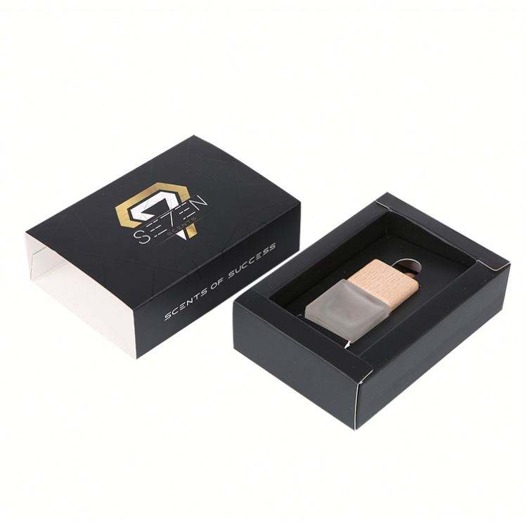 กล่องกระดาษแข็งสีดำขนาดเล็กพร้อมวัสดุรีไซเคิลเคลือบด้านและลายนูนสำหรับบรรจุภัณฑ์เครื่องสำอางแบบกำหนดเอง