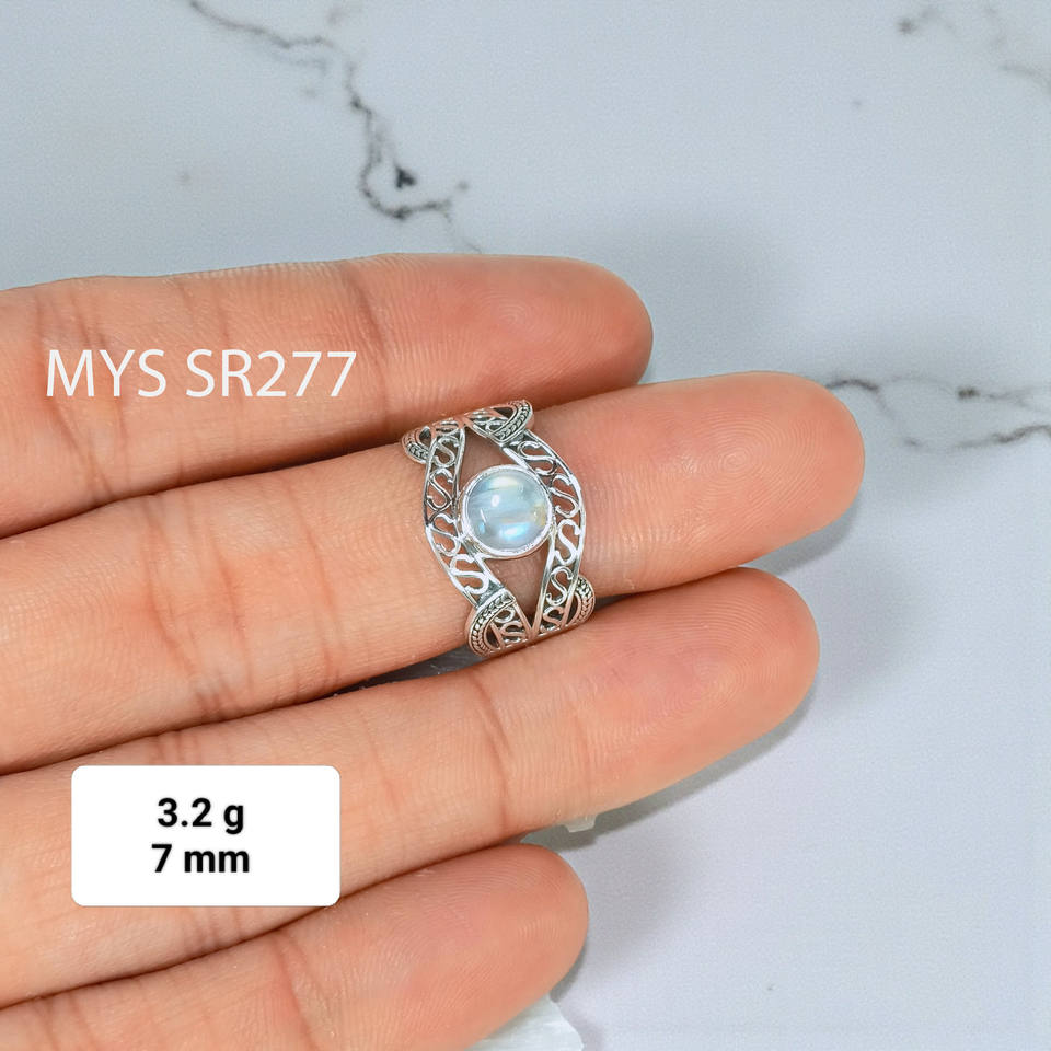 แหวนพลอยมูนสโตนสีน้ำเงินขนาดเล็กประดับด้วยไฟรุ้ง และแหวนเงินแท้ 925 ทำมือ ราคาขายส่ง