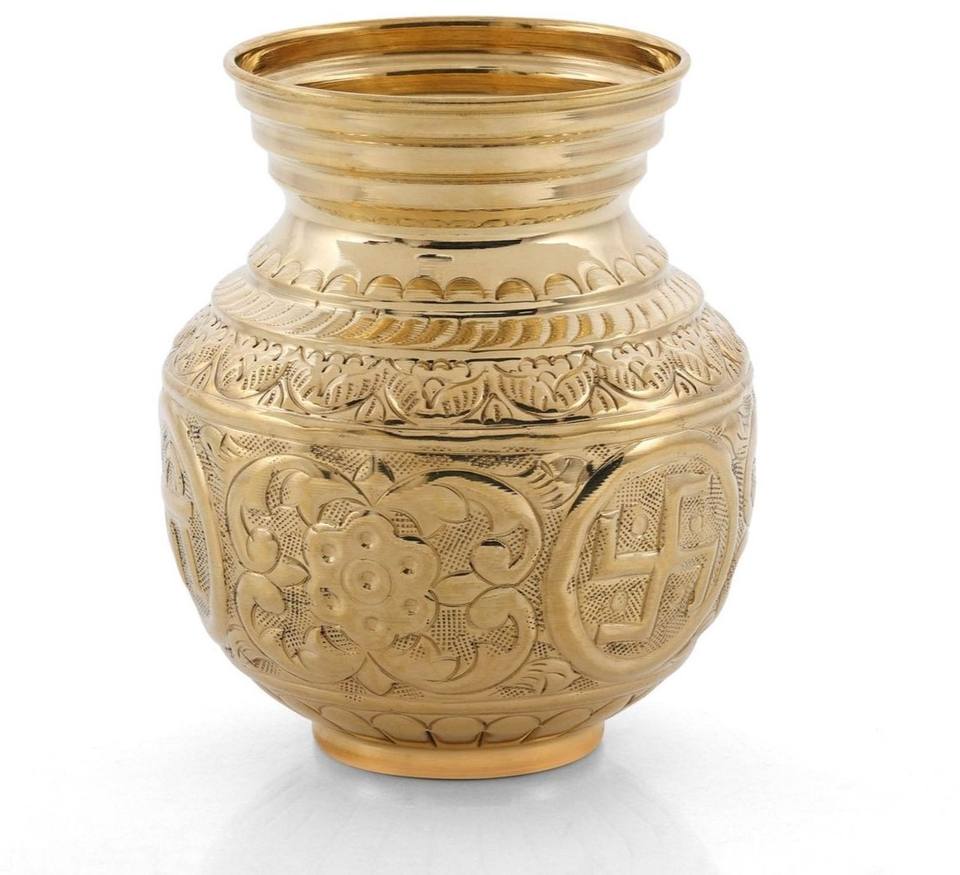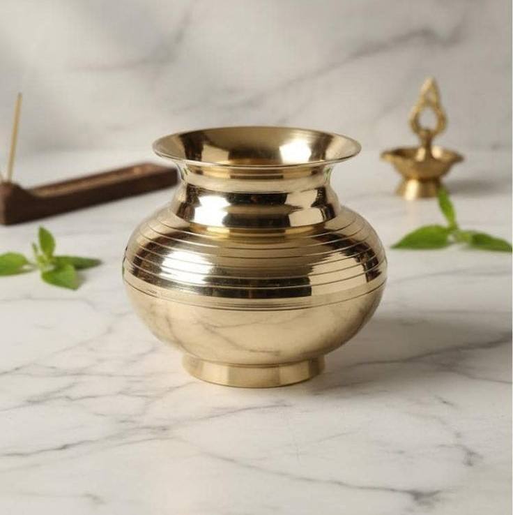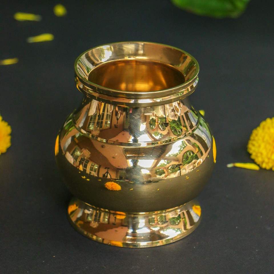 หม้อทองเหลืองขนาดเล็กสำหรับใส่เครื่องดื่ม ใช้สำหรับตกแต่งพิธีกรรมในวัด บ้าน สำนักงาน หรือในพิธีคาร์วา โลตา