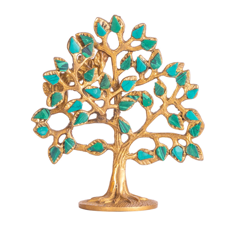 Kalpavriksha ทองเหลืองขนาดเล็กต้นไม้แห่งชีวิตโมเสกแผ่นโลหะติดผนังหัตถกรรมอินเดียของขวัญตกแต่งบ้านจิตวิญญาณ