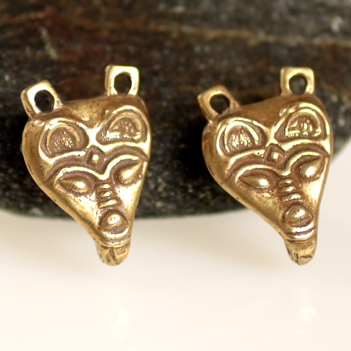 ห่วงเข็มขัดแบบพันขาสไตล์ไวกิ้ง ทำจากทองสัมฤทธิ์ขนาดเล็ก ย้อมสีด้วยพืช พร้อมตัวล็อคแบบรูปนกอีกา ใช้เป็นเครื่องราง