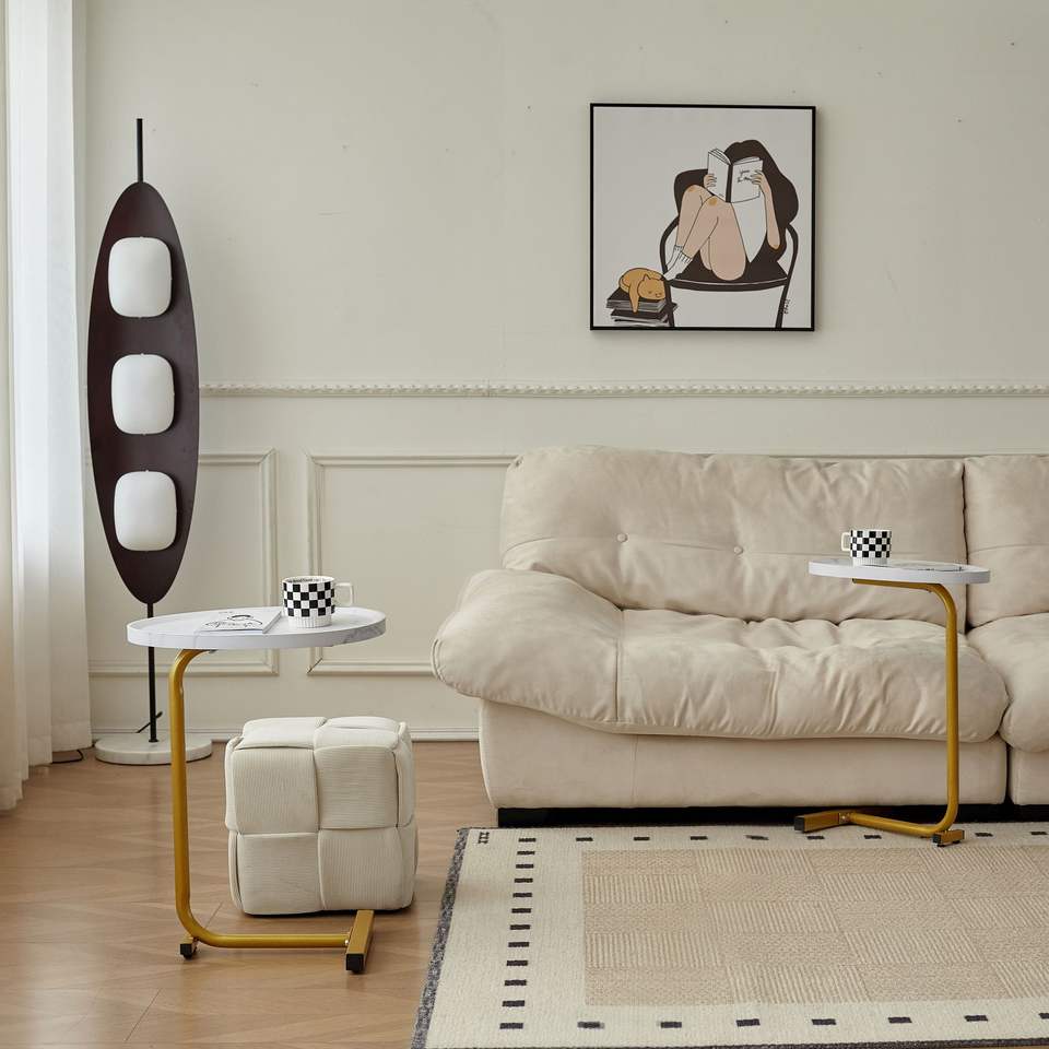 โต๊ะข้างเตียงทรงตัวซีสีขาวขนาดเล็กสำหรับโซฟา โต๊ะข้างเตียงสำหรับห้องนอนหรือเตียงนอน ประเภทสินค้า: โต๊ะข้างเตียง