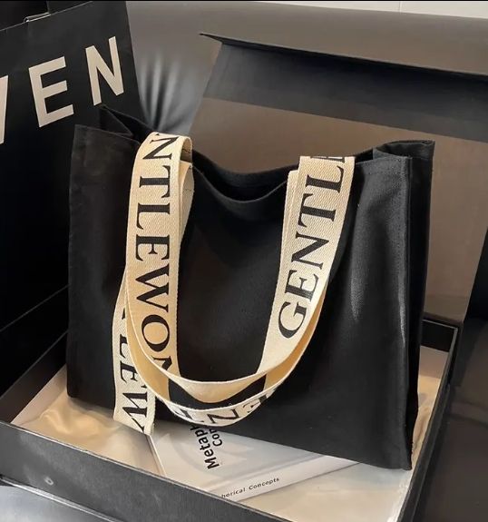 กระเป๋าผ้าแคนวาสขนาดเล็ก พิมพ์โลโก้ตามสั่ง กระเป๋าสะพายข้างสุดหรู ใช้ซ้ำได้ สีดำ สีธรรมชาติ