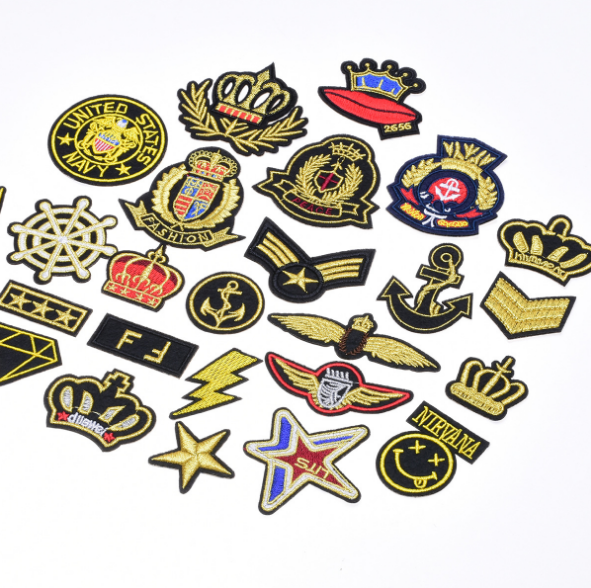 แผ่นปักไหมเชนิลล์ขนาดเล็กสำหรับหมวกและแบรนด์แฟชั่น-ลายมงกุฎทอง สมอ ดาว และตัวอักษร-สำหรับผู้ชาย/ผู้หญิง