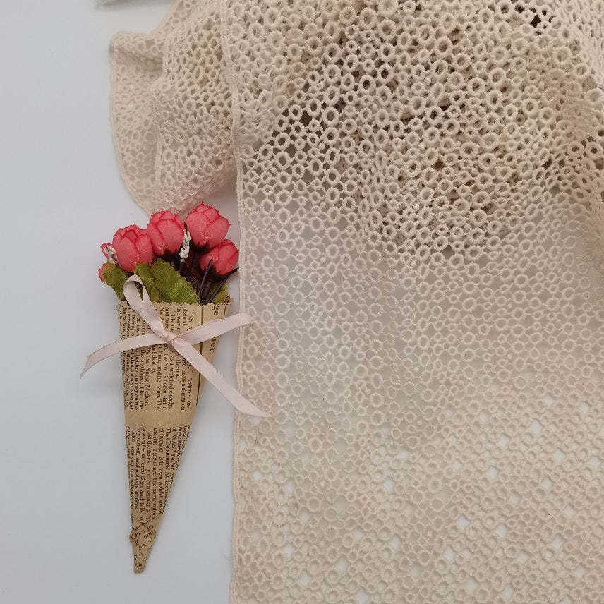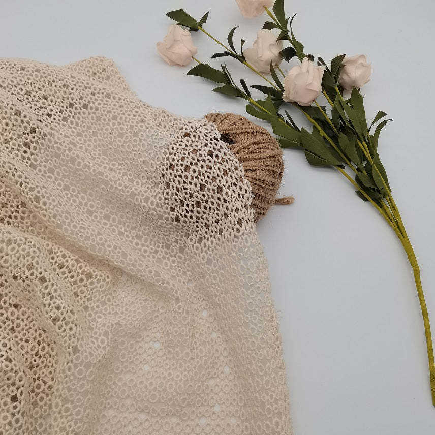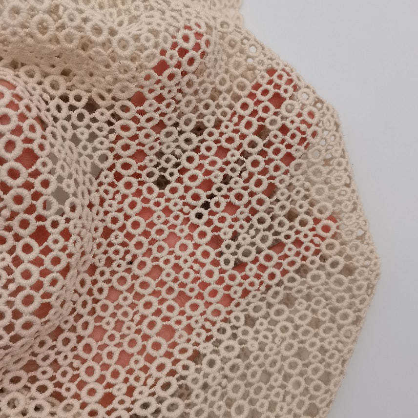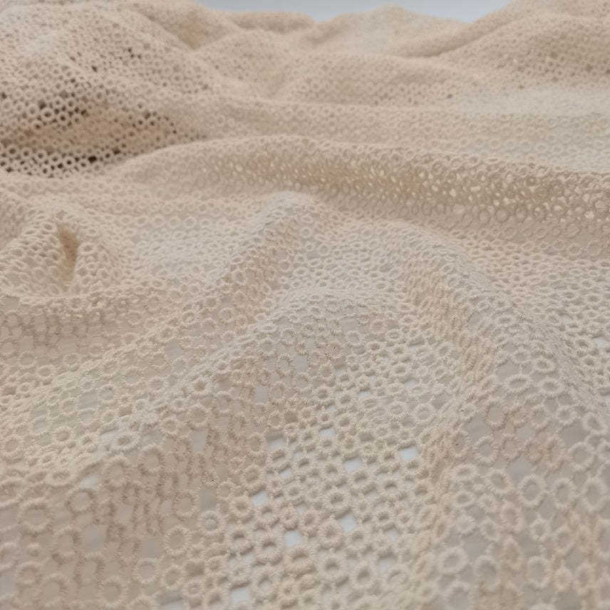 ลูกไม้สีงาช้างวงกลมเล็กผ้าลูกไม้สีเบจผ้าฝ้าย100% ลูกไม้เรขาคณิตน้ำหนักมากคุณภาพสูงครีม guipure โบราณ La