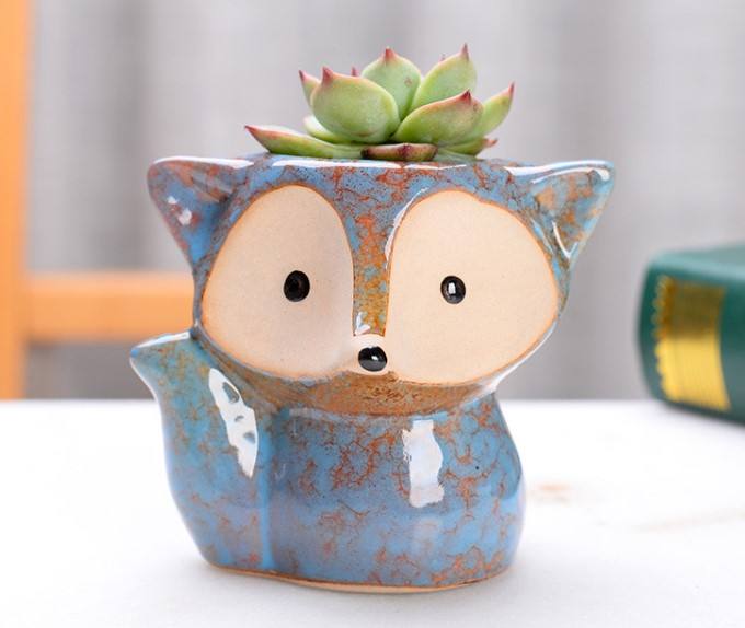 ชุดกระถางดอกไม้เซรามิกรูปสุนัขจิ้งจอกน่ารักขนาดเล็กกระถางต้นไม้แบบตั้งโต๊ะสไตล์นอร์ดิก