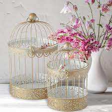 กรงนกโลหะสีทองขนาดเล็กสำหรับตกแต่งบ้านดีไซน์ใบองุ่นสำหรับงานแต่งงานของตกแต่งบ้านสวนแบบอินเดียแฮนด์เมด