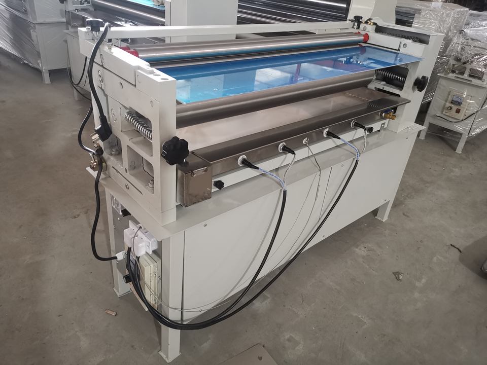 เครื่องกาวลามิเนตกล่องกระดาษลูกฟูกตั้งโต๊ะขนาดเล็กเครื่องติดกาวติดโครงภาพ DC ควบคุมความเร็วได้