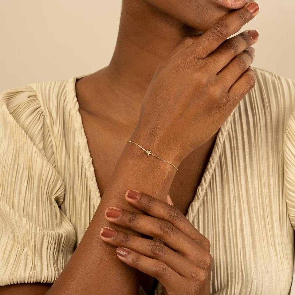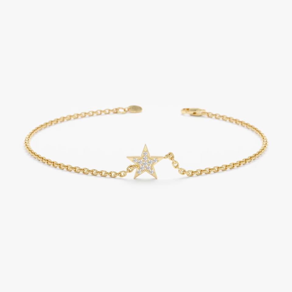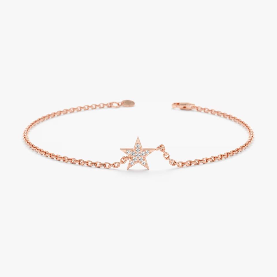 สร้อยข้อมือเพชรเล็กทรงดาวเพาะเลี้ยงในห้องปฏิบัติการ ทองคำแท้ 14K สีขาว/เหลือง/โรส รับรองโดย IGI เครื่องประดับเรียบหรูแบบมินิมอล สามารถสวมซ้อนกันได้ เป็นของขวัญ