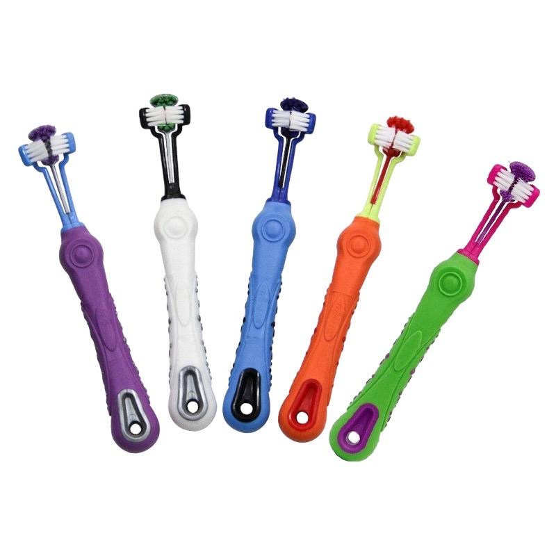 ชุดดูแลช่องปากสุนัขขนาดเล็กแปรงสีฟันขนแปรงแบบสามหัวหัวแปรงสำหรับสัตว์เลี้ยงแปรงสีฟันสำหรับทำความสะอาด ° 360เป็นมิตรกับสิ่งแวดล้อม
