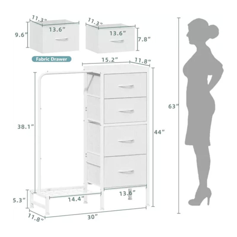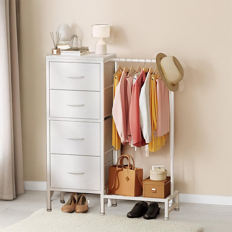 ตู้เสื้อผ้าขนาดเล็กพร้อมชั้นแขวนและลิ้นชัก4อันช่วยประหยัดพื้นที่โครงโลหะสำหรับจัดห้องนอนเฟอร์นิเจอร์อพาร์ทเมนต์สำหรับโรงแรม/หอพัก/ตู้เสื้อผ้า