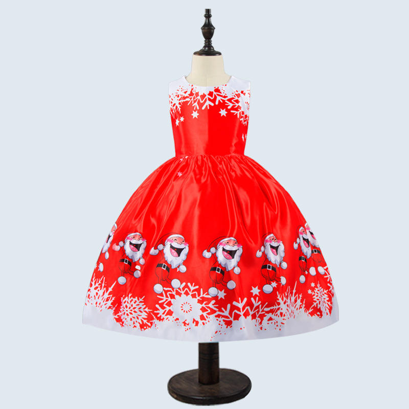 สินค้าขายดีขนาดเล็ก ชุดเดรสทรงเอไลน์สีแดงคริสต์มาส ประดับระบาย ลายซานตาคลอส สำหรับเด็กผู้หญิง ให้ลุคสดใสและมีชีวิตชีวา
