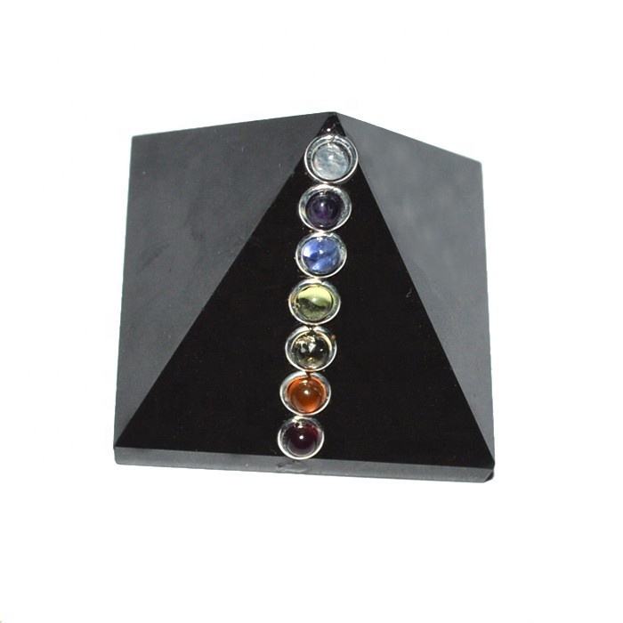 ปิรามิดสีดำอัญมณีขนาดเล็กที่มีจักระ cabochons ฮวงจุ้ยและรักสไตล์อาเกตแกะสลักหินกึ่งมีค่า