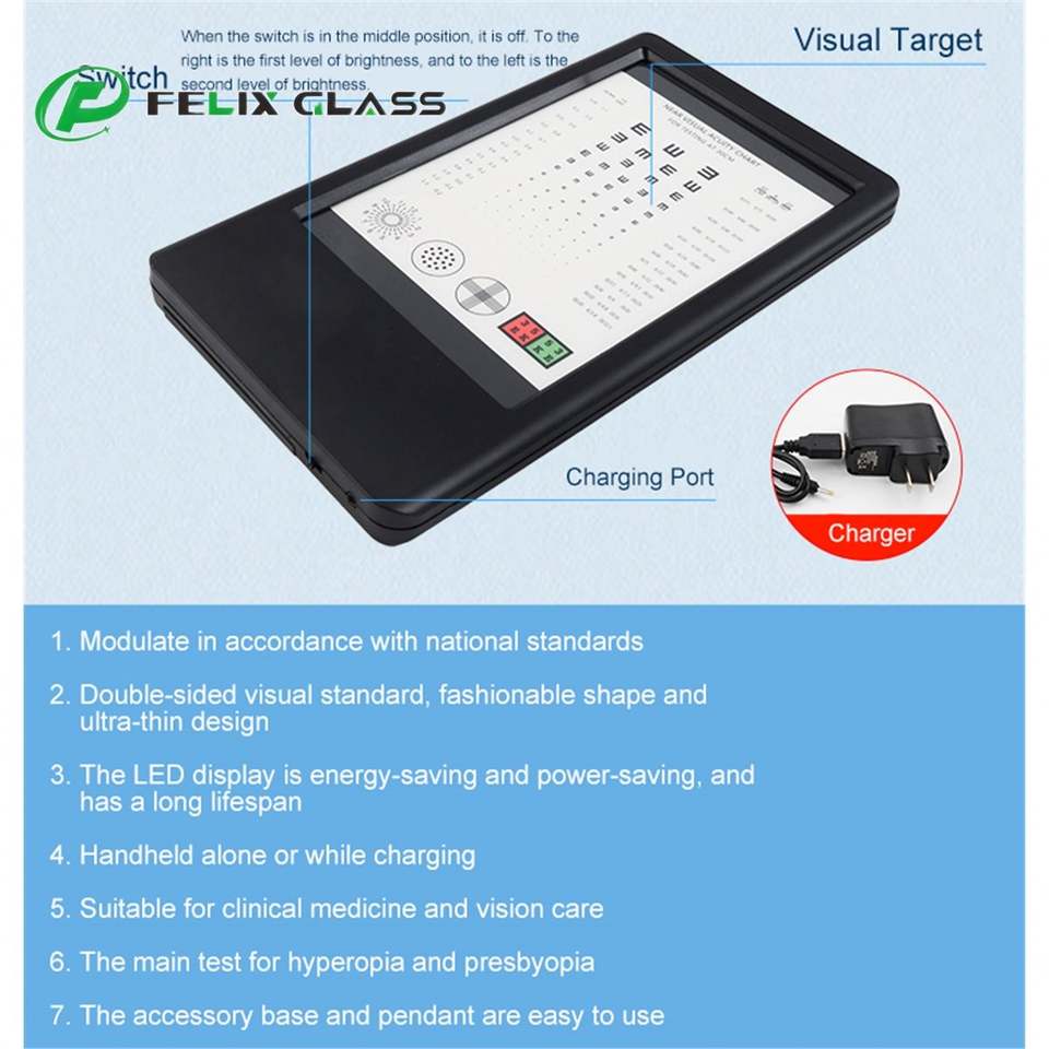 แผนภูมิการมองเห็นระยะใกล้แบบพกพา อุปกรณ์ตรวจวัดสายตา LED อเนกประสงค์ สำหรับการตรวจวัดสายตาและเครื่องมือทางสายตา