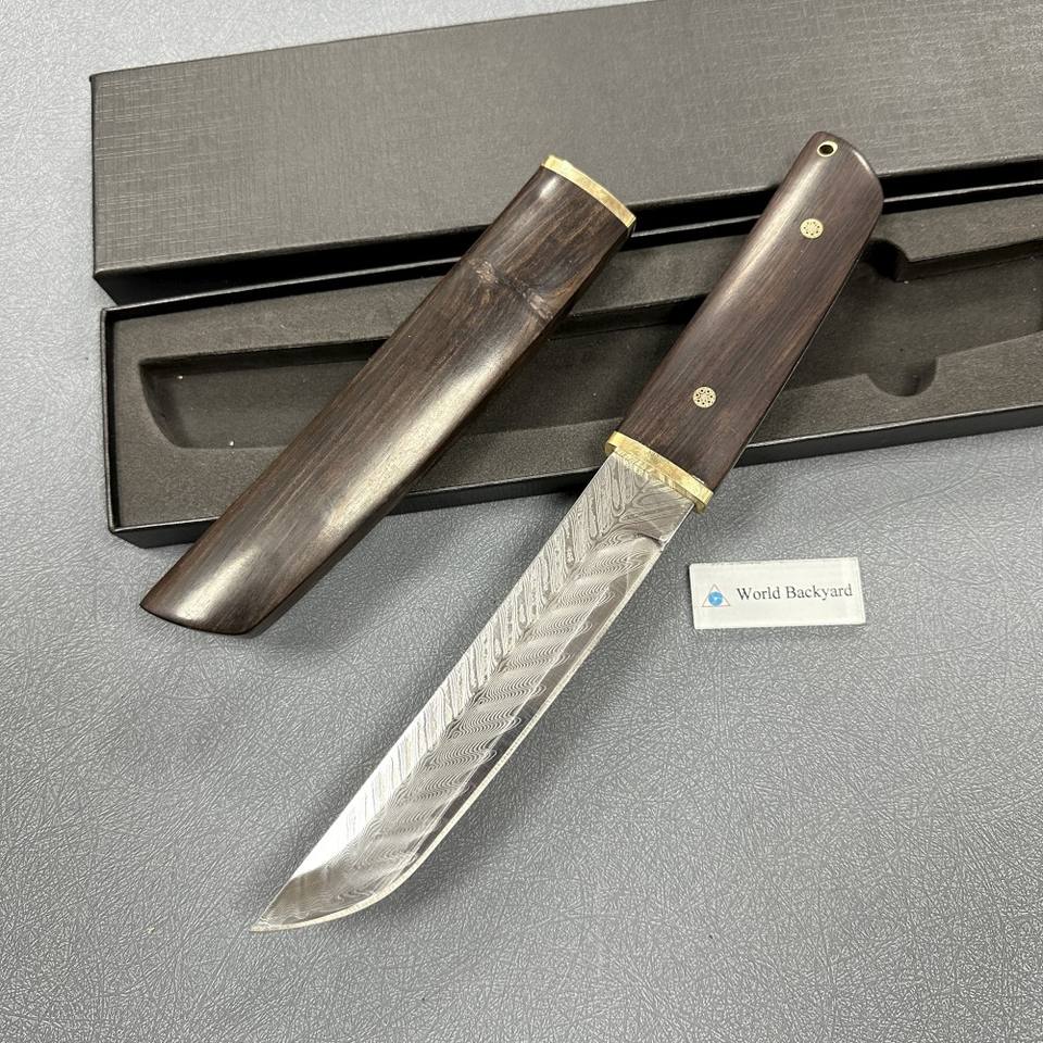 VG10บูชิโดขนาดเล็กสไตล์ญี่ปุ่นใบมีดเหล็กโบวี่แบบตายตัวพร้อมปลอกสายดาบไม้มะเกลือ
