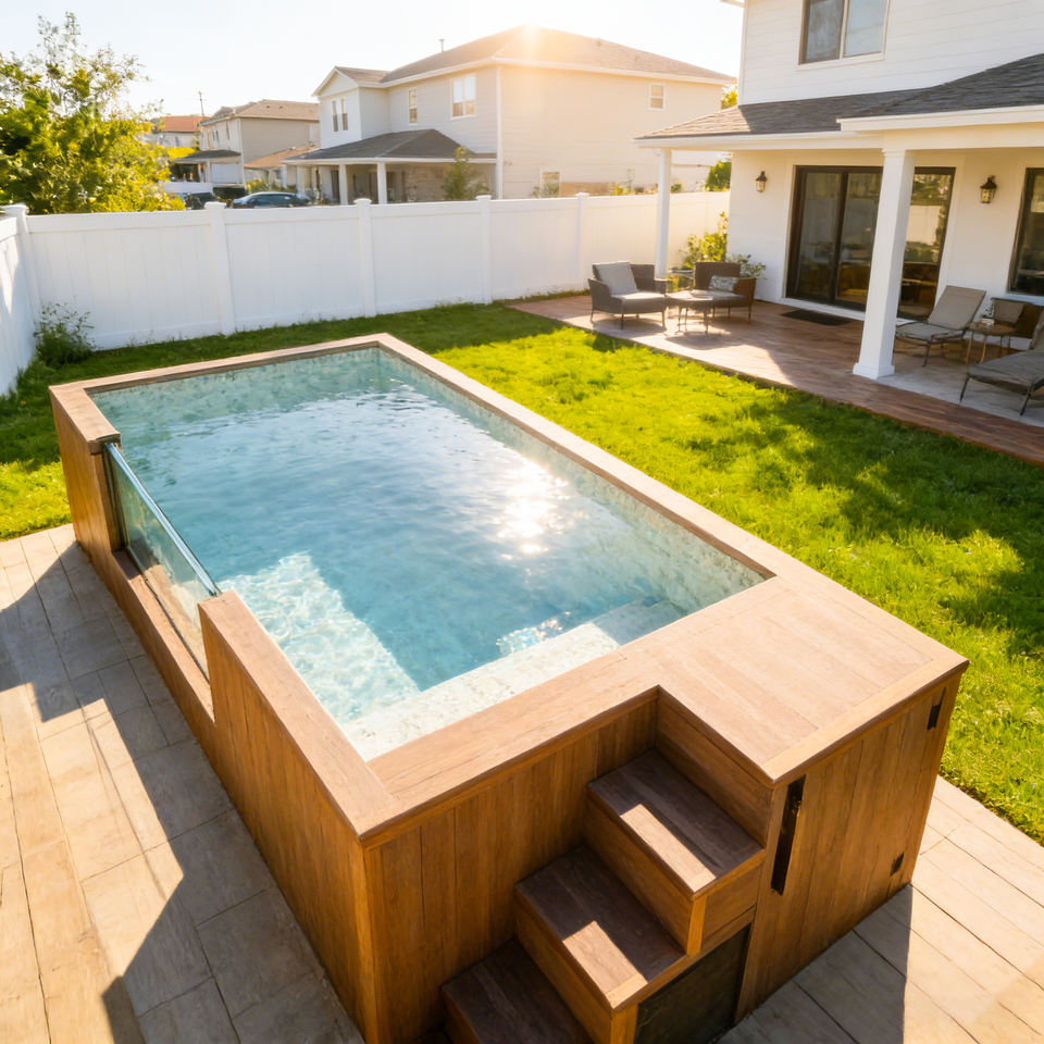 สระว่ายน้ำไฟเบอร์กลาสสำหรับครอบครัว รุ่นทันสมัย สีสั่งทำได้ หนา 8 มม. รับประกัน 3 ปี ทนทาน พร้อมตู้คอนเทนเนอร์สำเร็จรูปสำหรับเด็ก